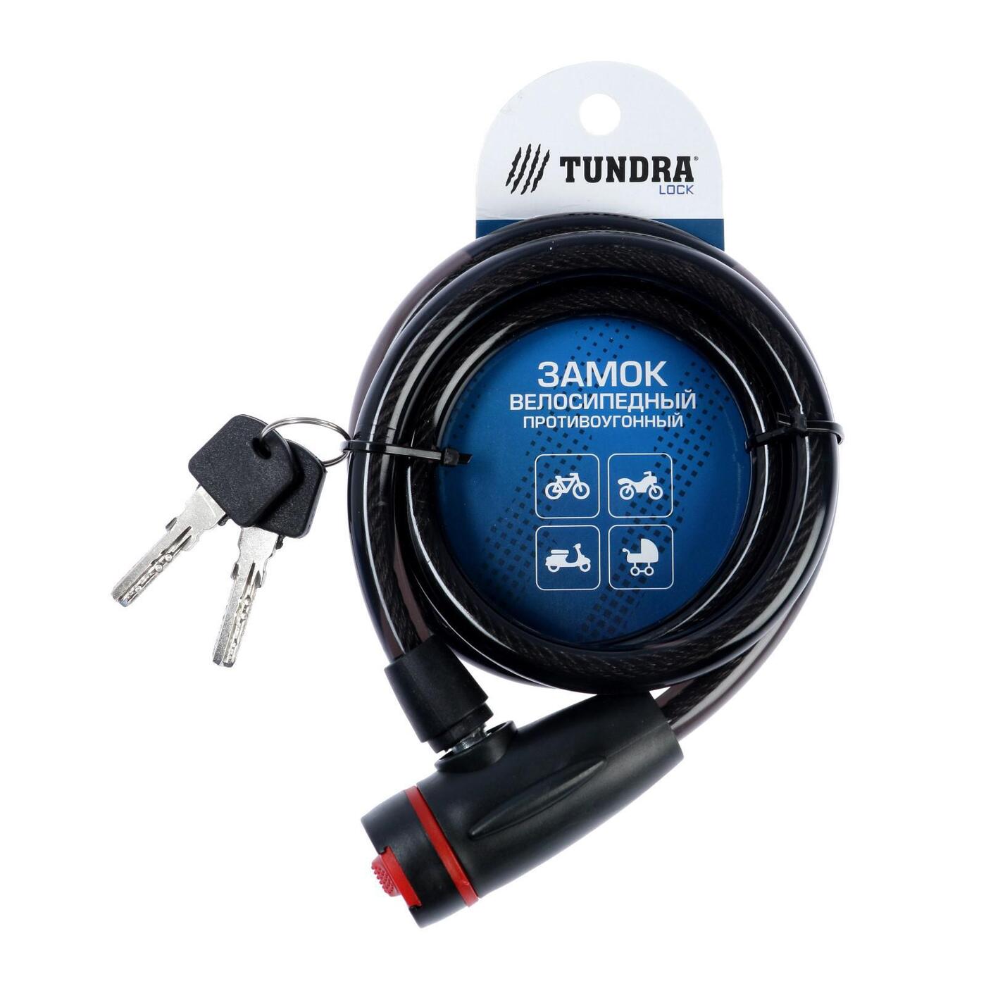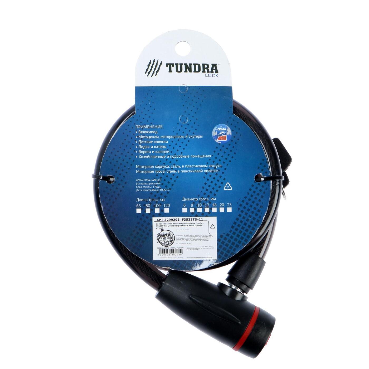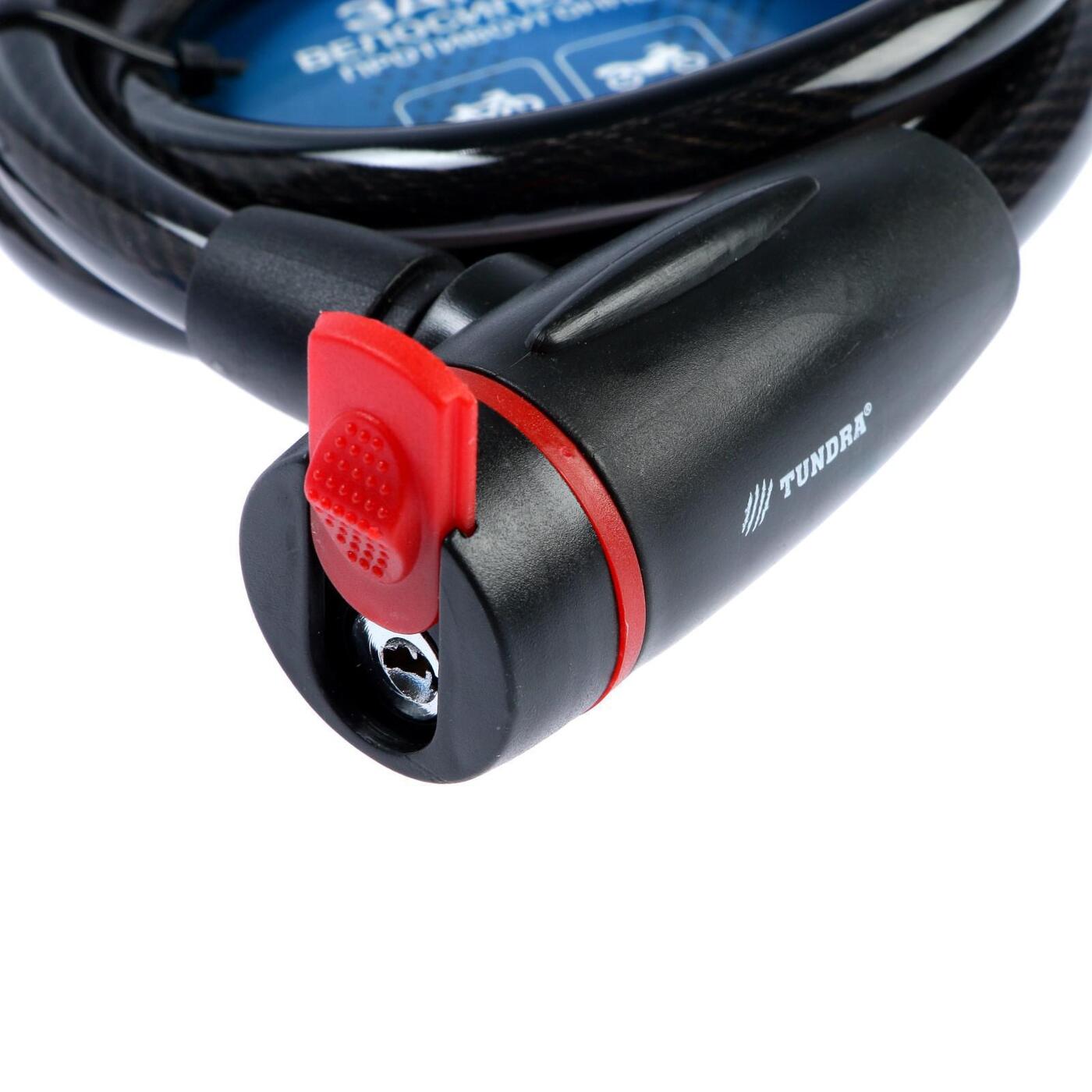 Замок навесной велосипедный TUNDRA, 10*1000 мм, перфорированный ключ с пластиковой ручкой