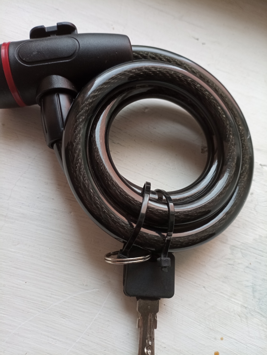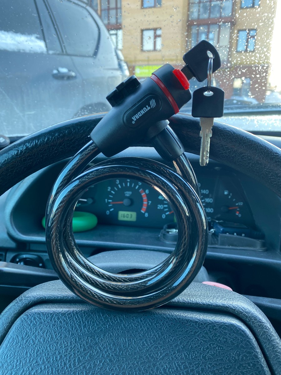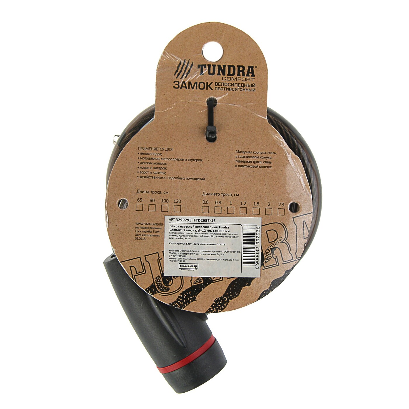 Замок навесной велосипедный TUNDRA, 10*1000 мм, перфорированный ключ с пластиковой ручкой