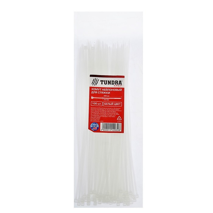 Хомут нейлоновый TUNDRA krep для стяжки, белый, в упаковке 100 шт.