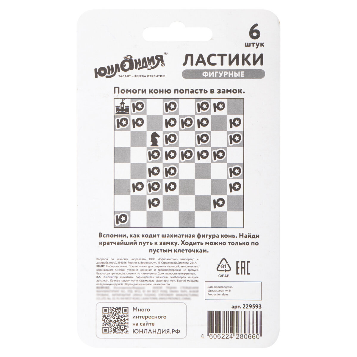 Ластики фигурные Шахматы Набор 6 шт., черно-белые