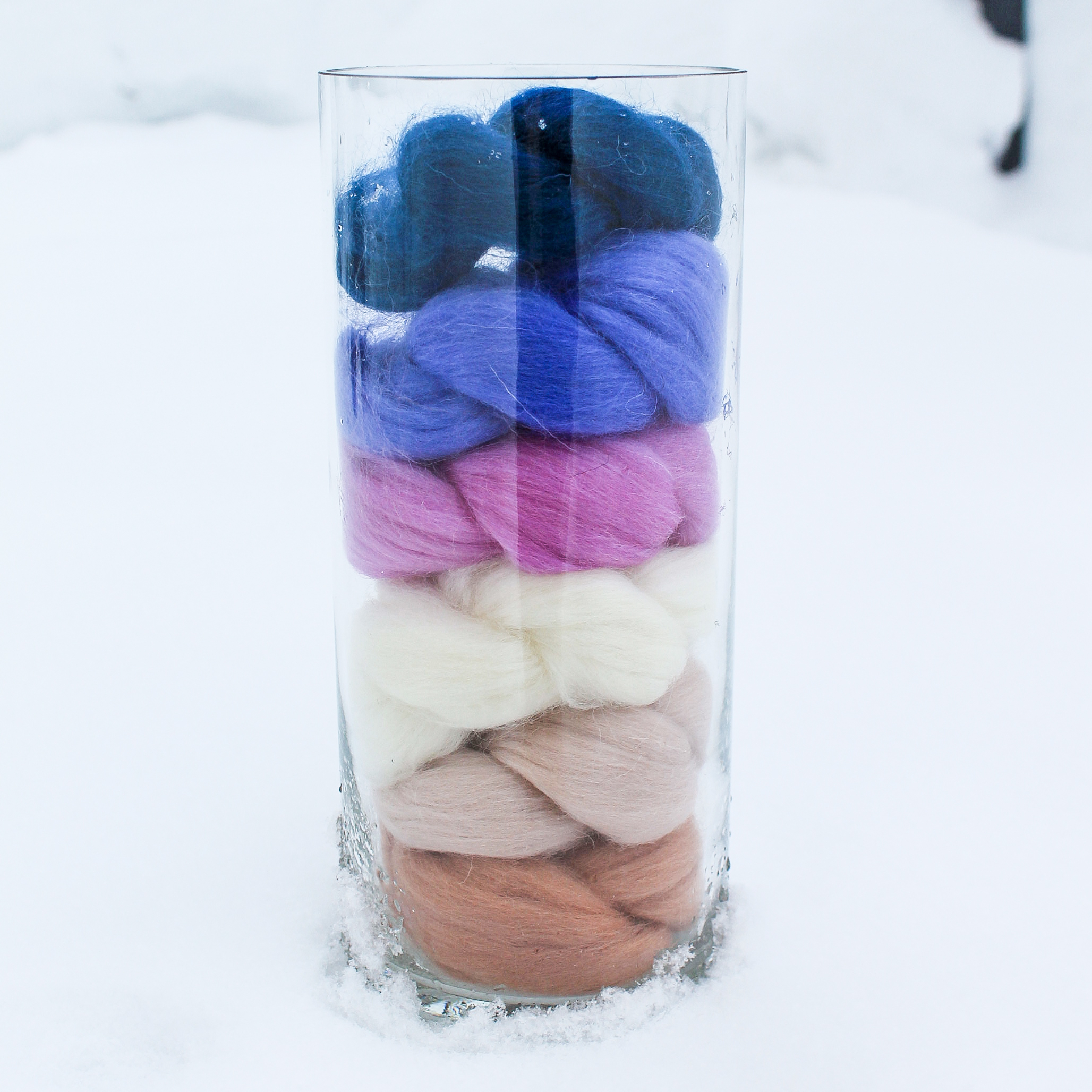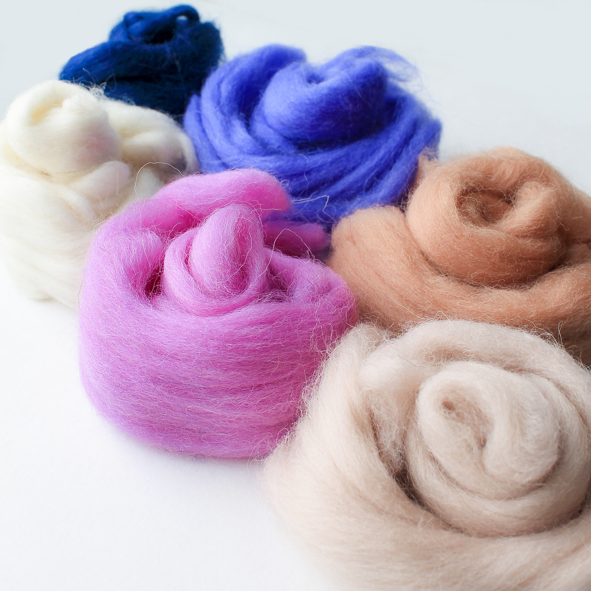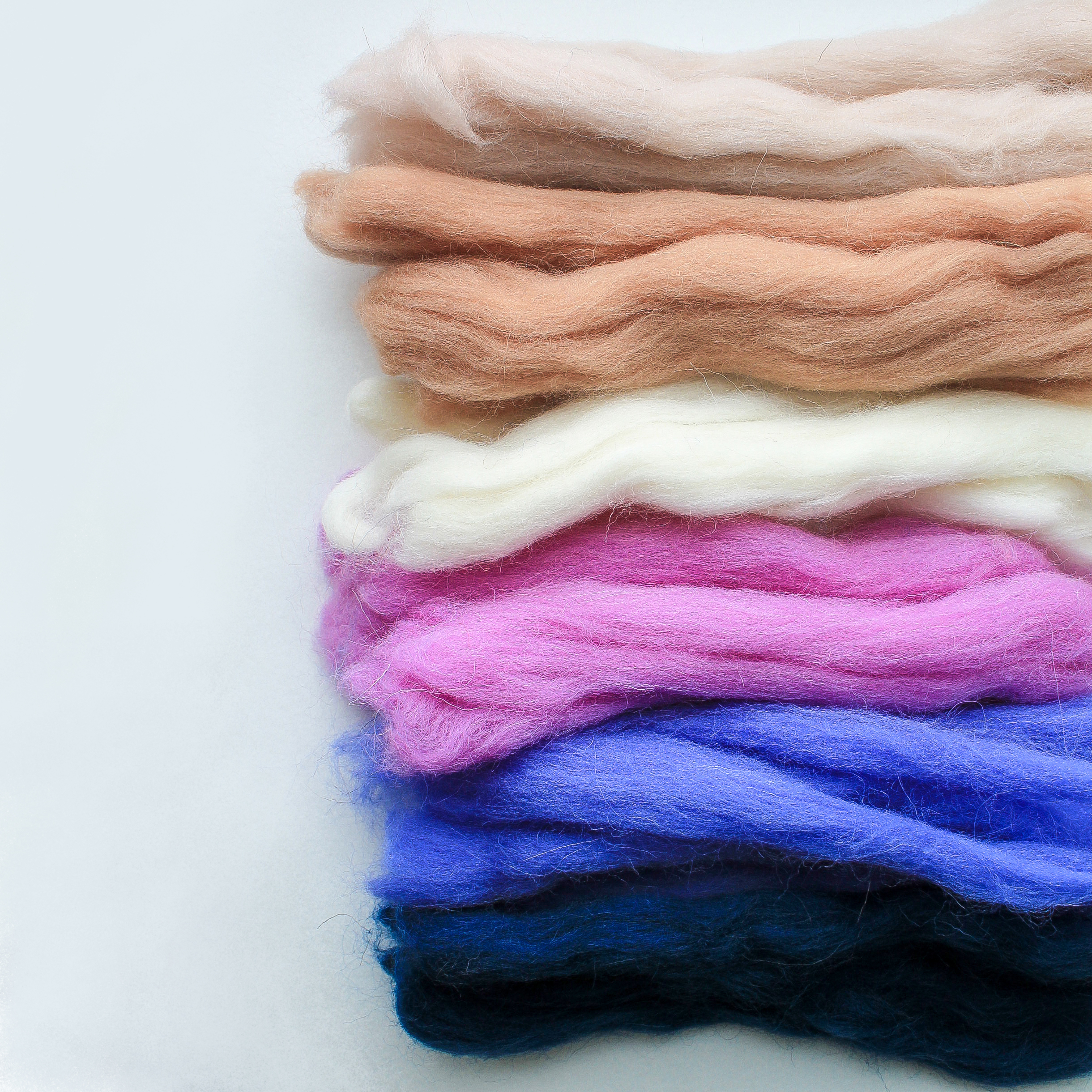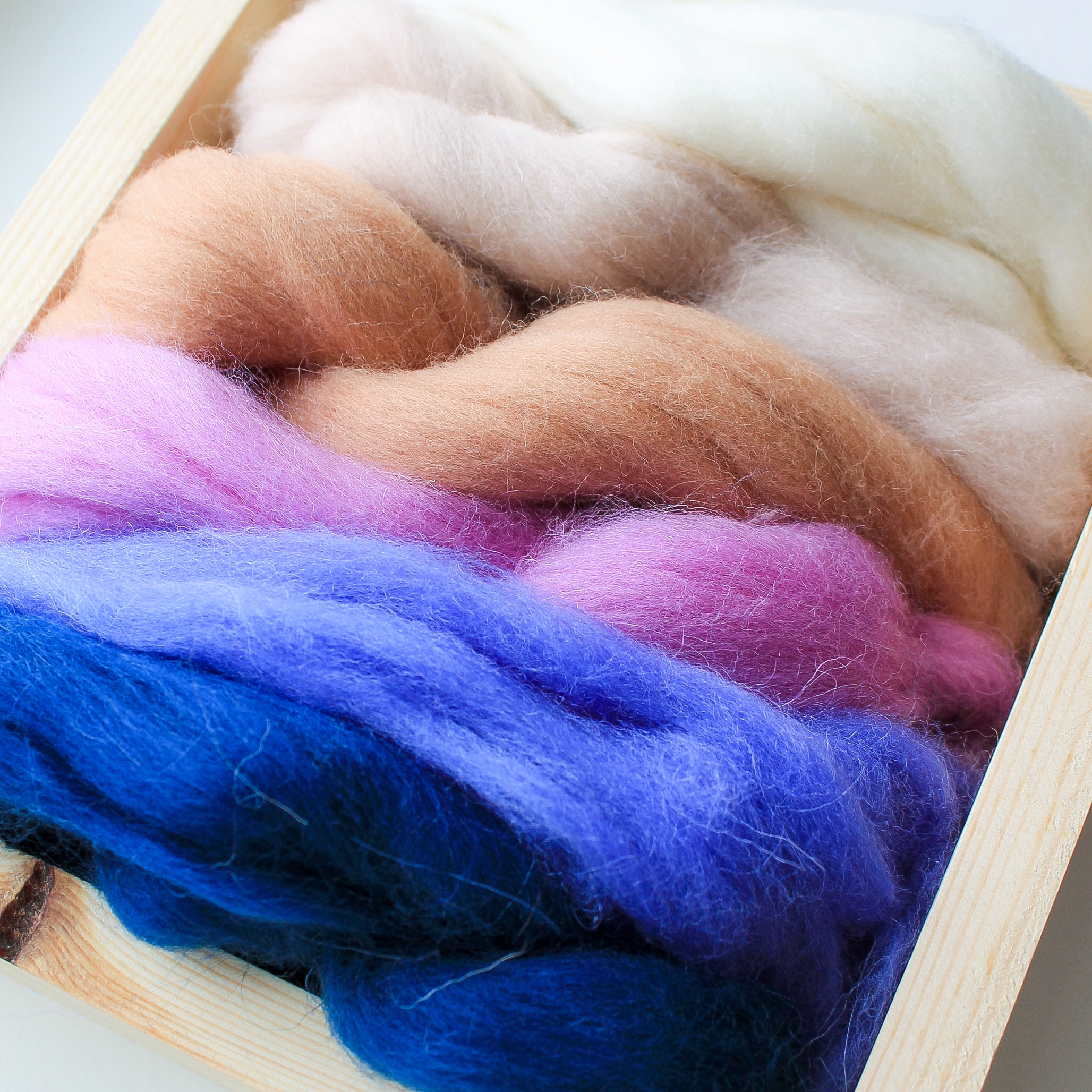 Шерсть для валяния, микс Морской закат, полутонкая шерсть 100 %, набор 6 цветов, 50 г