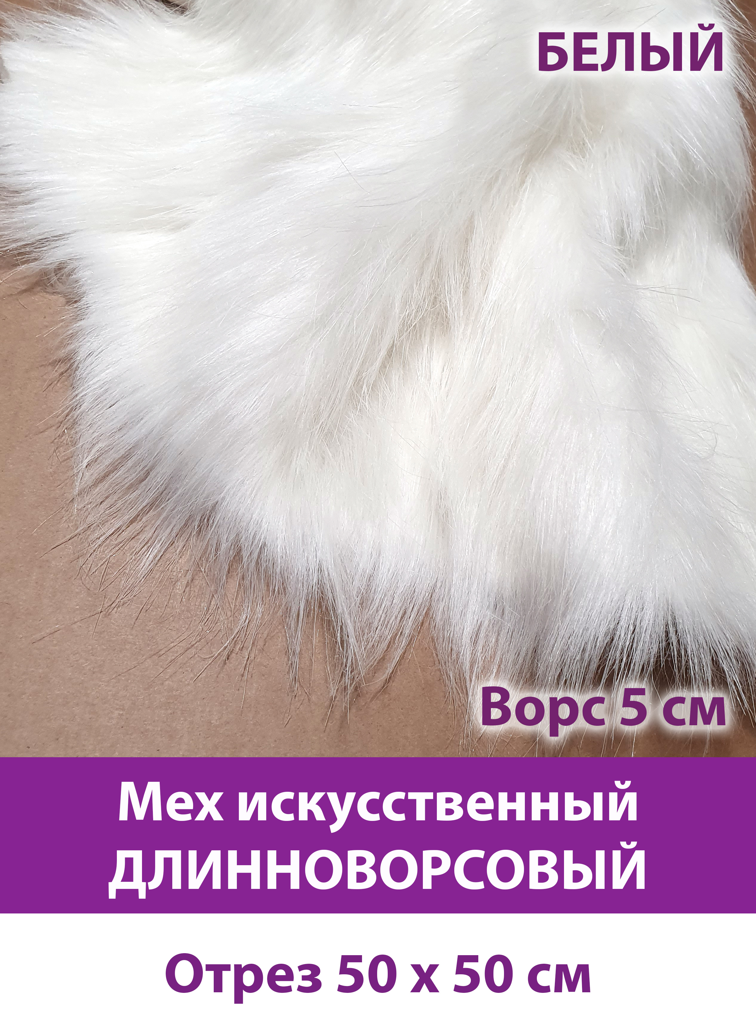 Мех длинноворсовый (длина ворса 4,5-5 см), мягкий, искусственный, для рукоделия, 50х50 см, белый