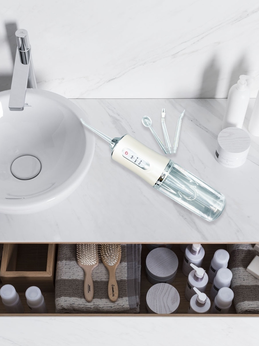Ирригатор портативный для полости рта с 4мя насадками 200 мл белый
