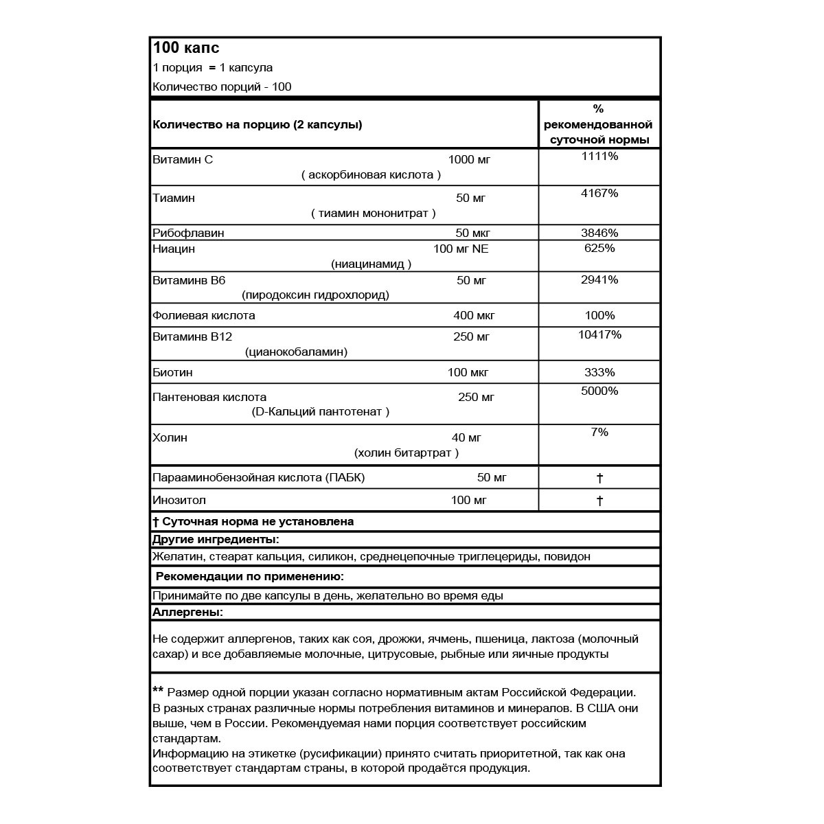 Витаминно-минеральный комплекс спортивный Twinlab Stress B-Complex 100 caps