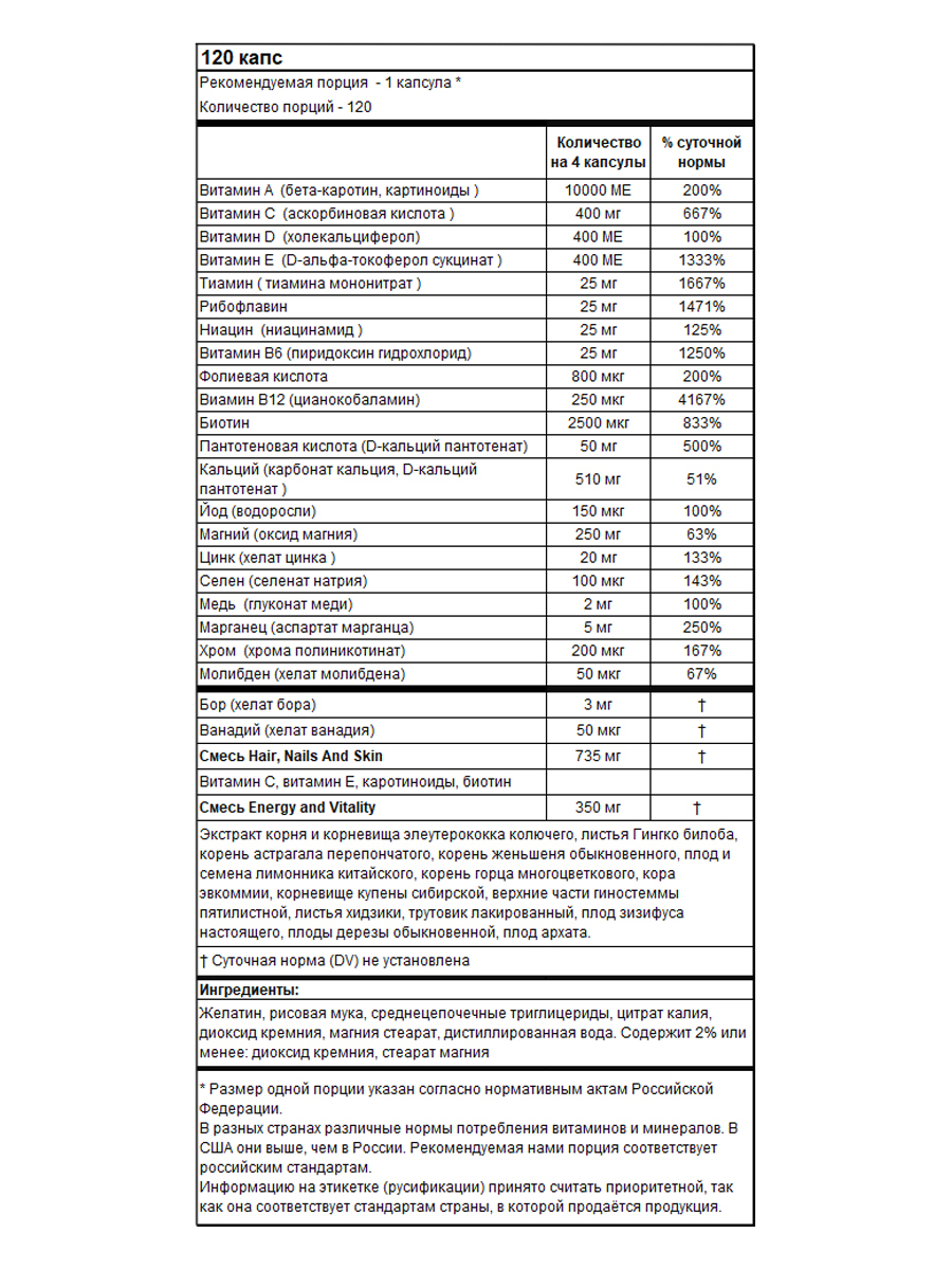 Витаминно-минеральный комплекс спортивный Twinlab DAILY ONE with iron 60 caps