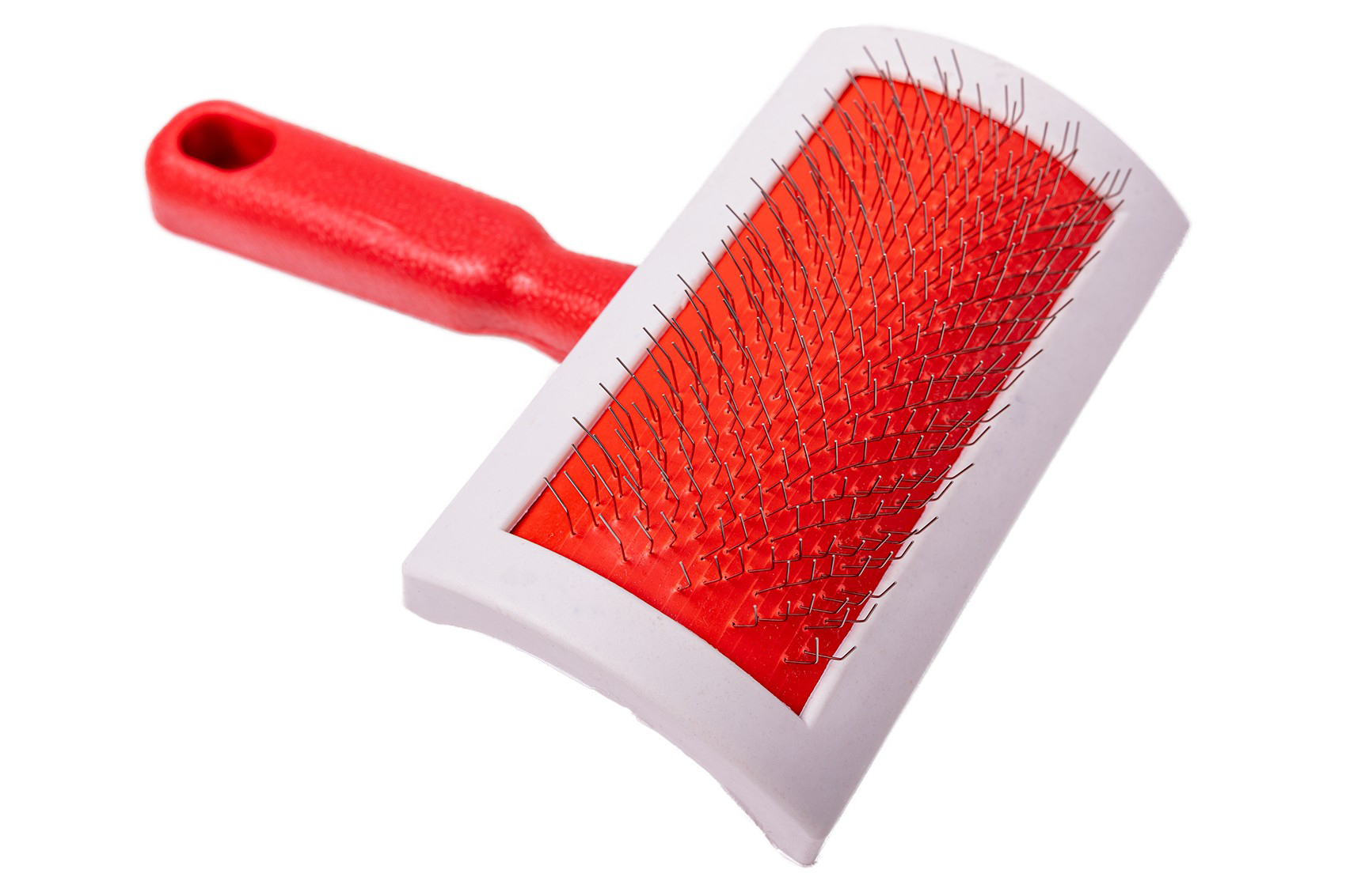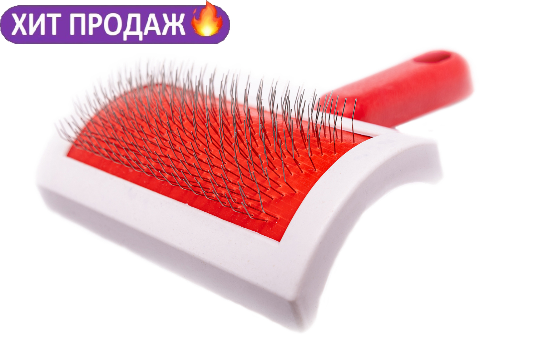 Щетка для меха и шерсти, щетка для вычесывания, пуходерка, жесткая, длина 150 мм, цвет красный