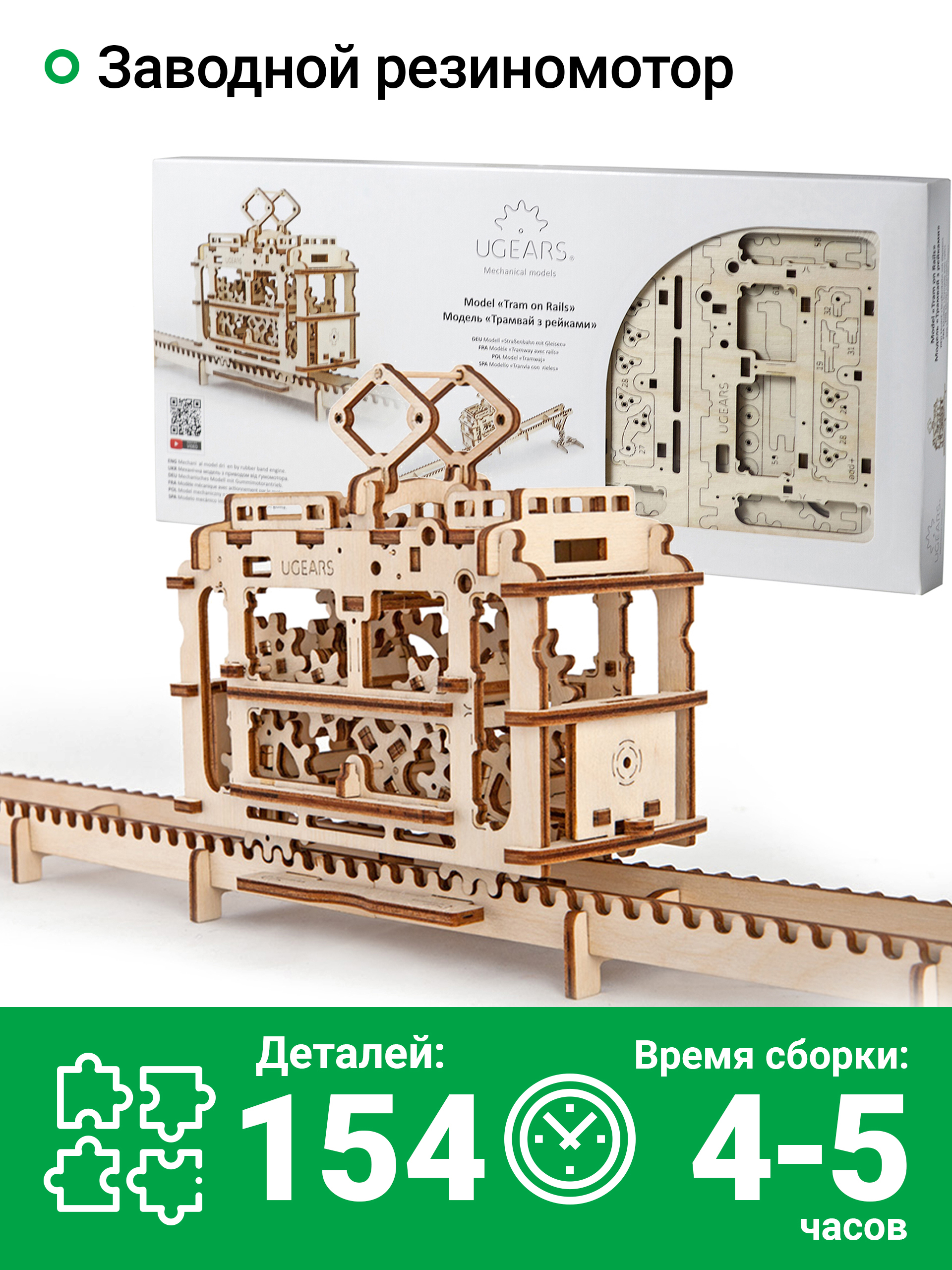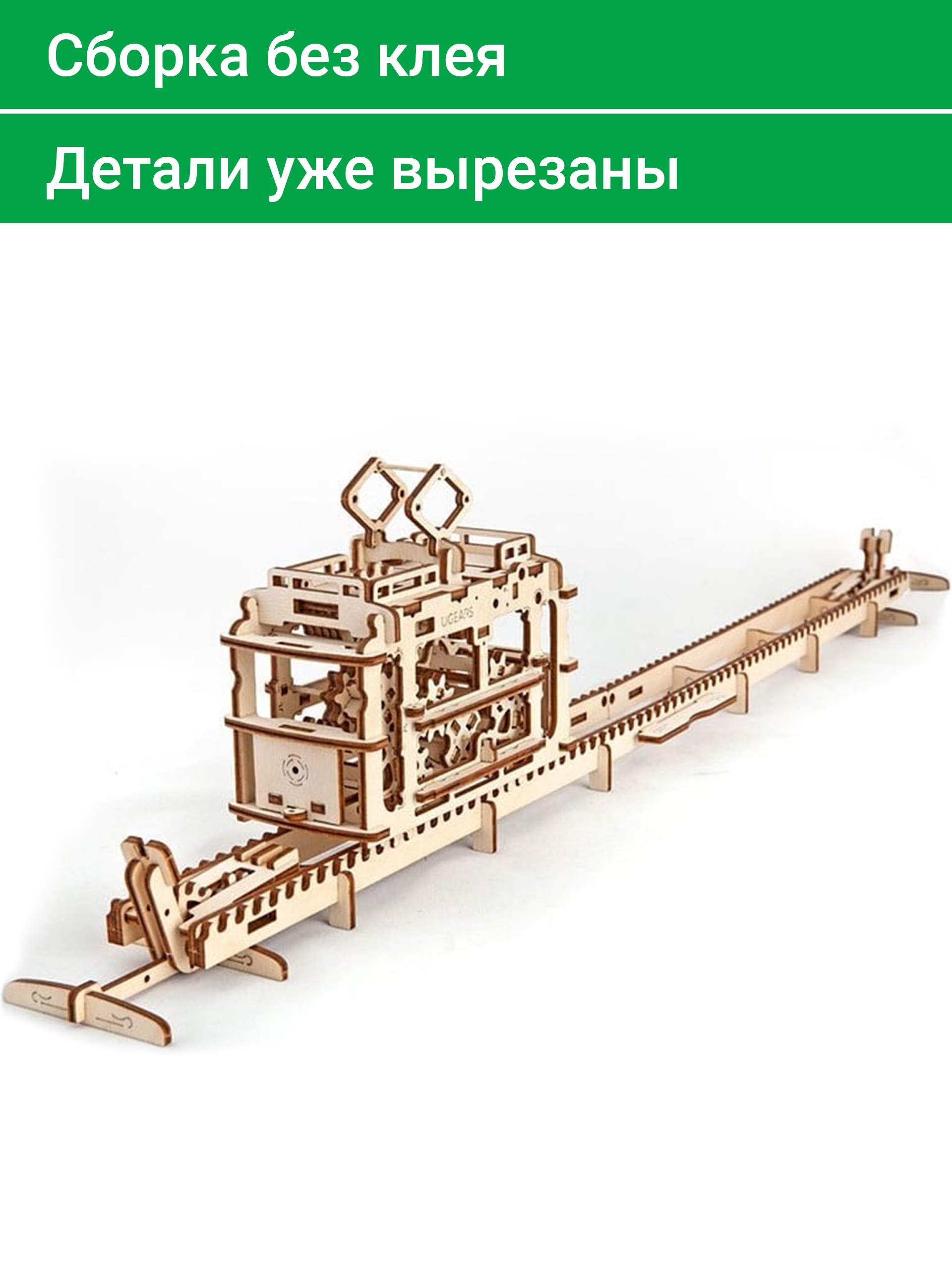 Сборная деревянная модель 3D-пазл UGEARS - Трамвай с рельсами