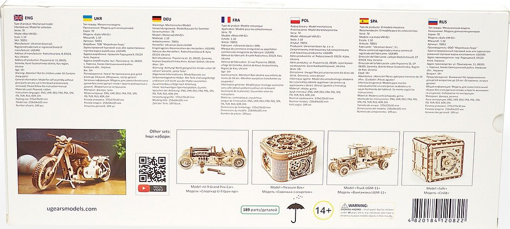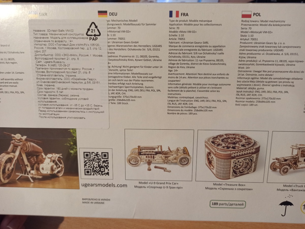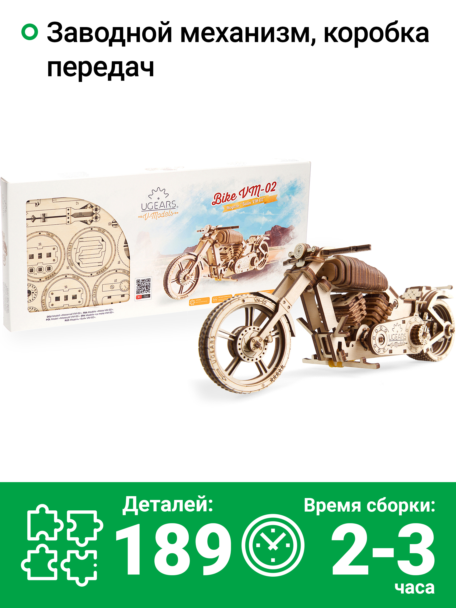 Сборная деревянная модель 3D-пазл UGEARS - Байк VM-02