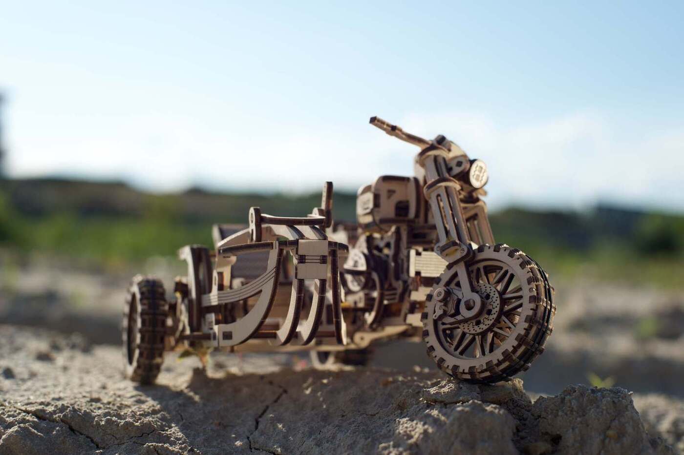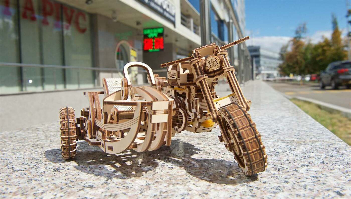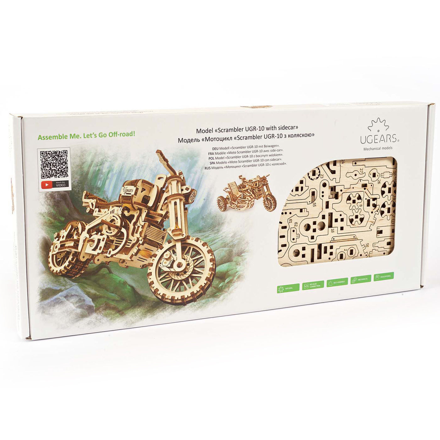 Сборная деревянная модель 3D-пазл UGEARS - Мотоцикл Scrambler UGR-10 с коляской