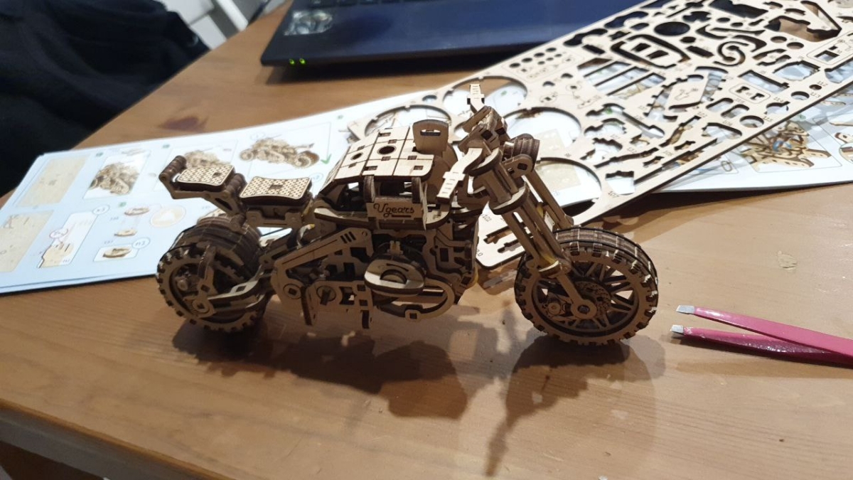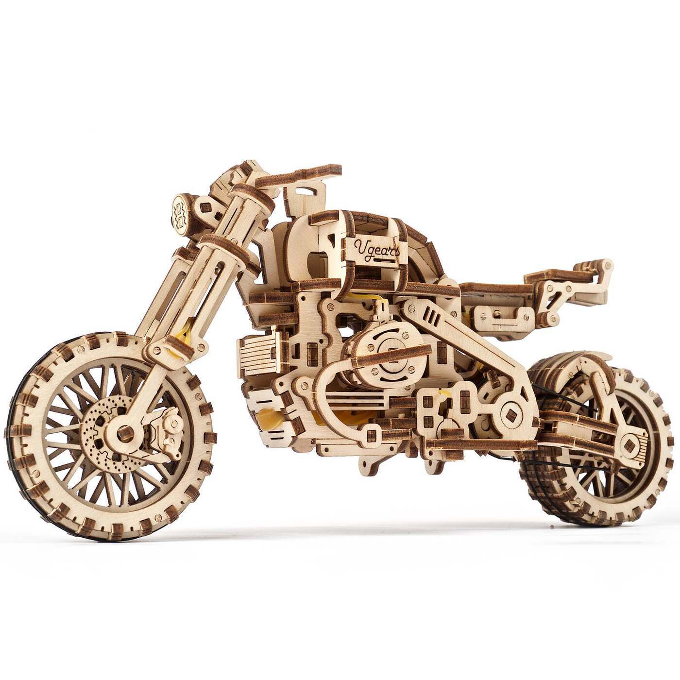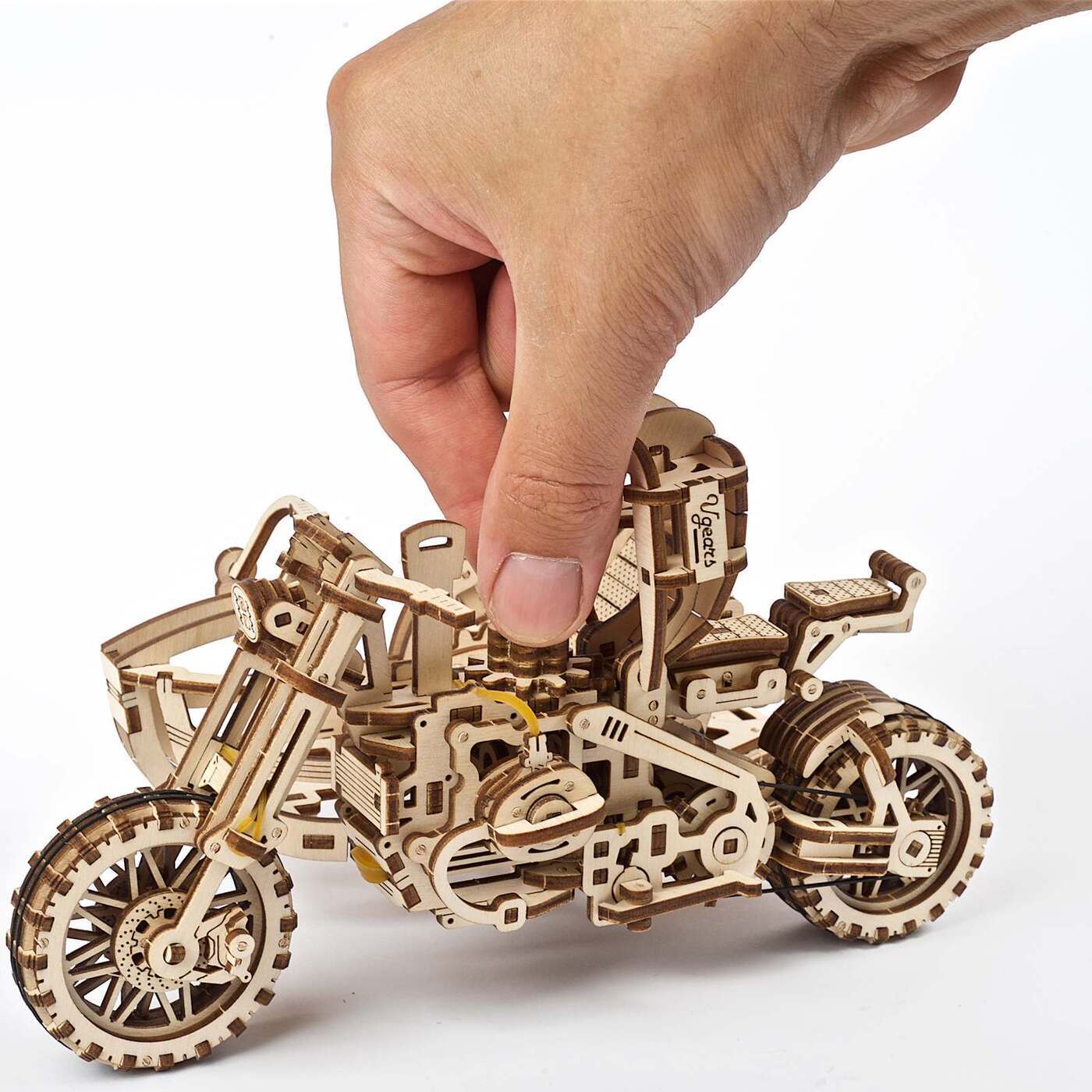 Сборная деревянная модель 3D-пазл UGEARS - Мотоцикл Scrambler UGR-10 с коляской