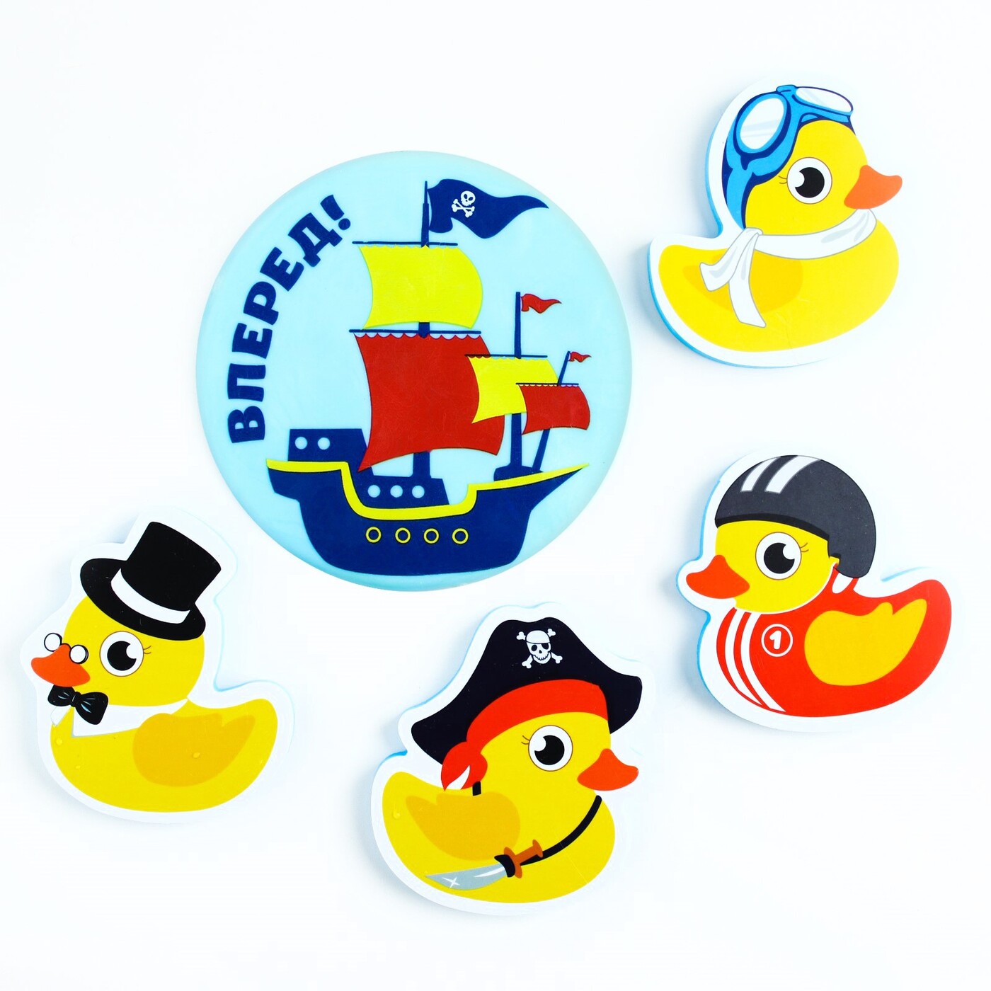 Ukid GAME / Набор игрушек для ванны из EVA "Утиная команда", мини-коврик, 4 шт