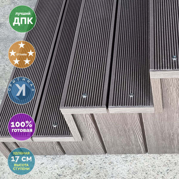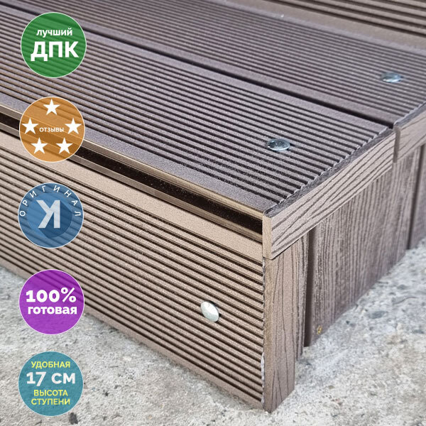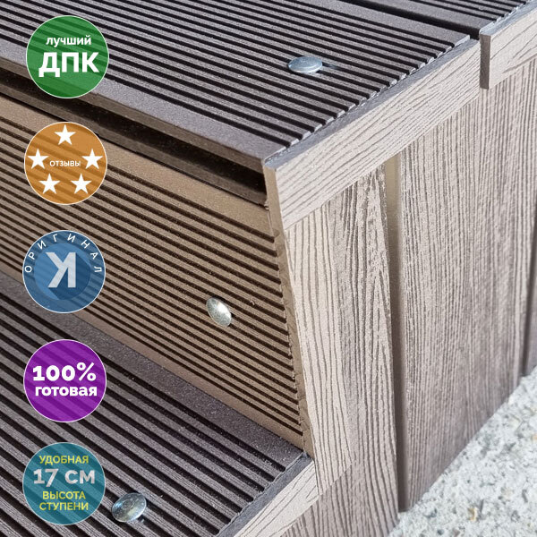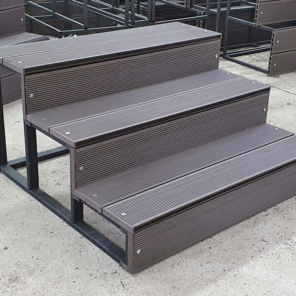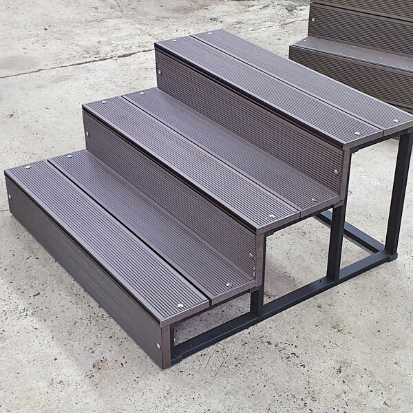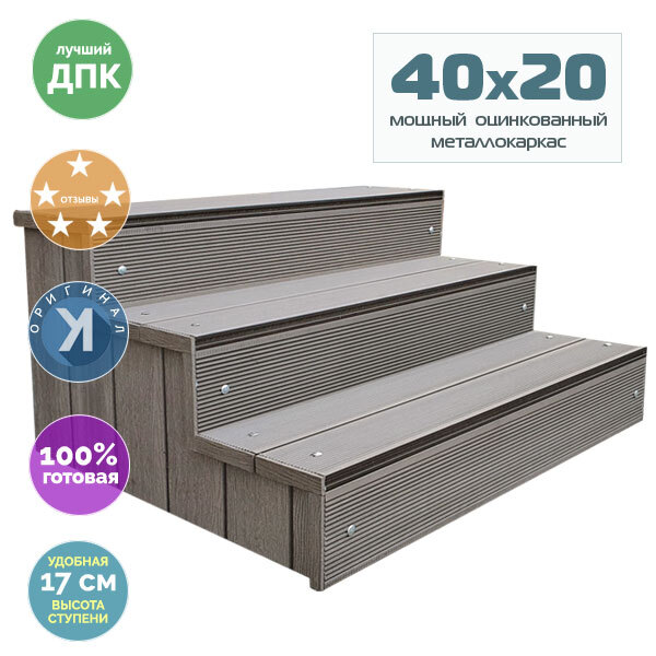 Лестница Медиум (40х20) 2 ступени с подступенками и боками из ДПК 34х100х61 см на металлокаркасе