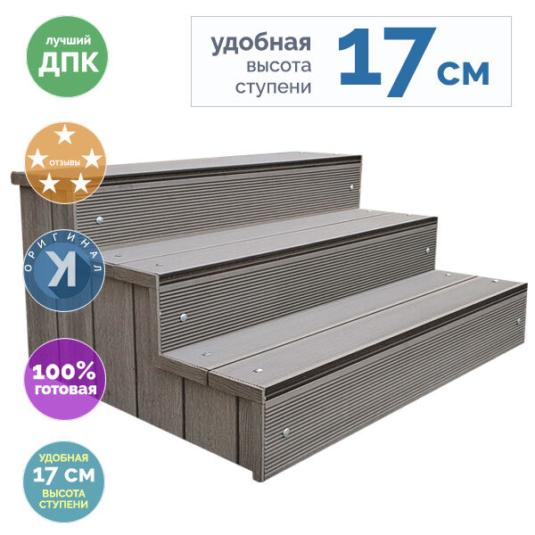 Приставная лестница Топ с полнотелыми ступенями из ДПК с каркасом 40х40 мм, 34х100х66 см.