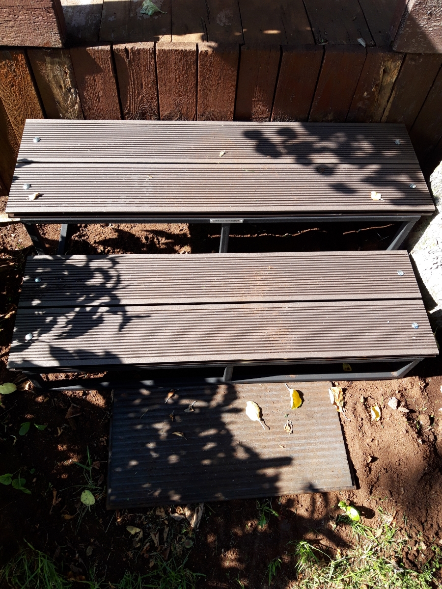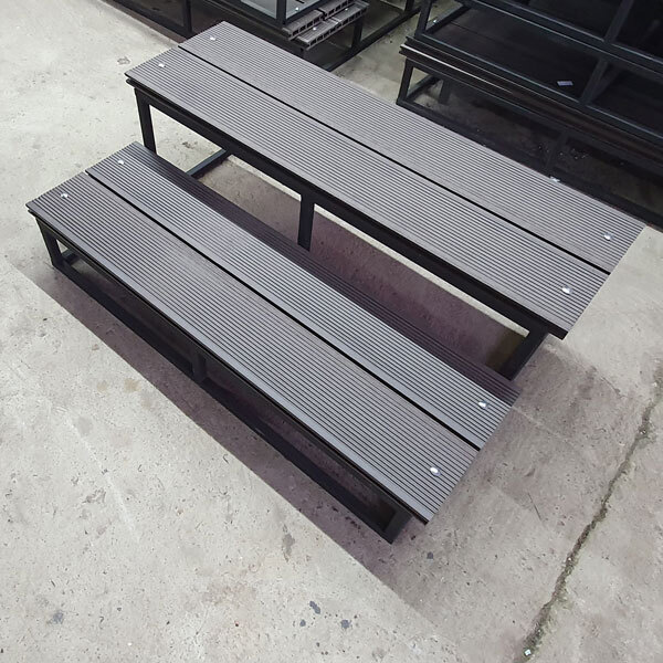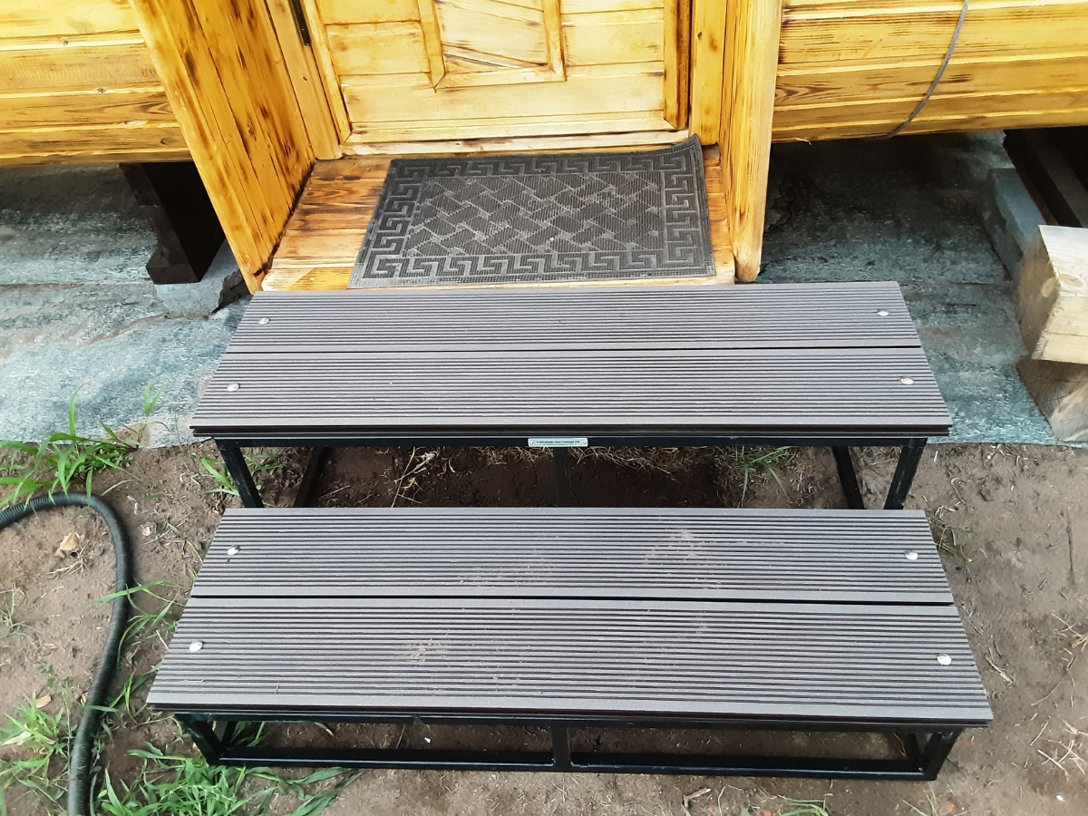 Уличная лестница Дача 15 2 ступени из ДПК приставная 30х100х60 см цельносварная