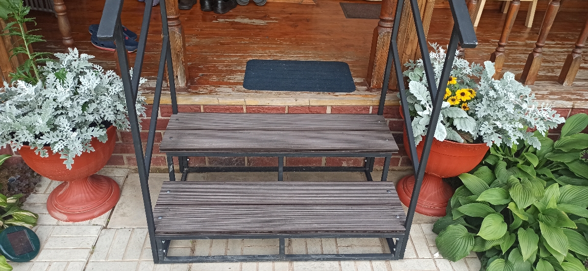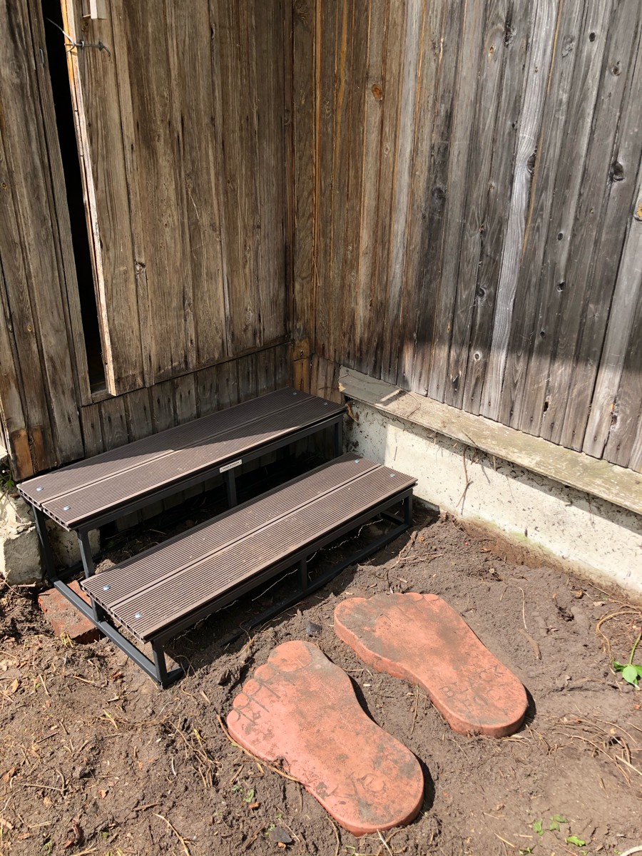 Уличная лестница готовая 1 ступень- площадка из ДПК (приступок) 17х100х91 см цельносварная
