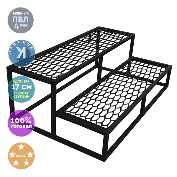 Лестница Сота 2 ступени ЧЕРНАЯ со ступенями из ПВЛ приставная 34х100х61 см цельносварная