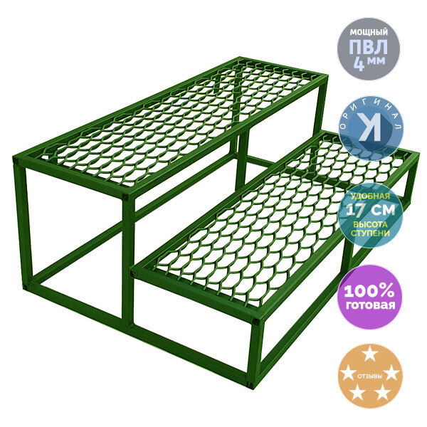 Лестница Сота 2 ступени ЗЕЛЕНАЯ со ступенями из ПВЛ приставная 34х100х61 см цельносварная