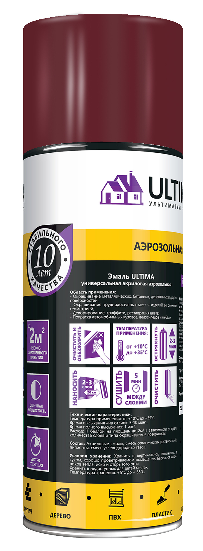 Краска аэрозольная Ultima универсальная 520 мл, винно-красный