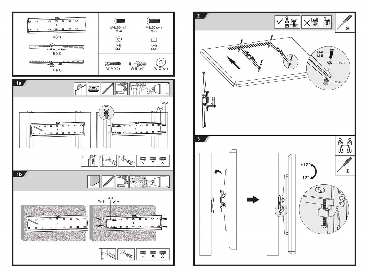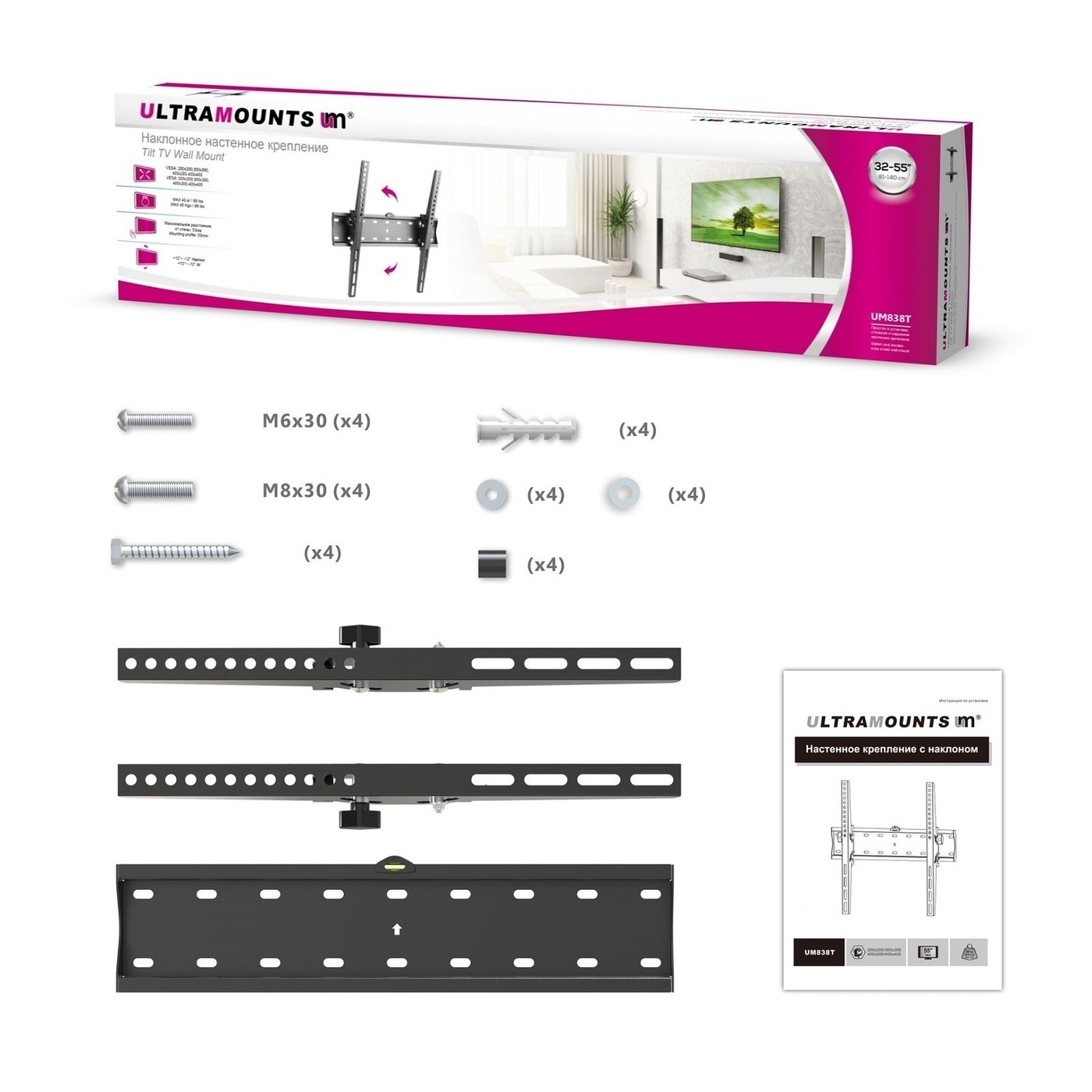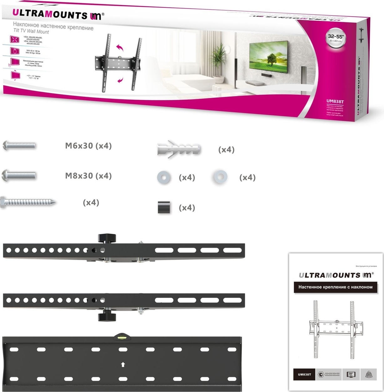 Кронштейн для телевизора наклонный Ultramounts UM838T 32"-55"