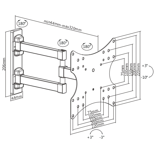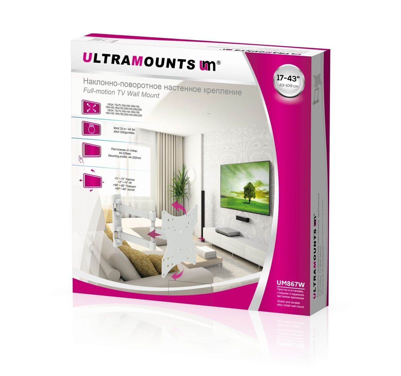 Кронштейн для телевизора наклонно-поворотный Ultramounts UM867W 17"-43"