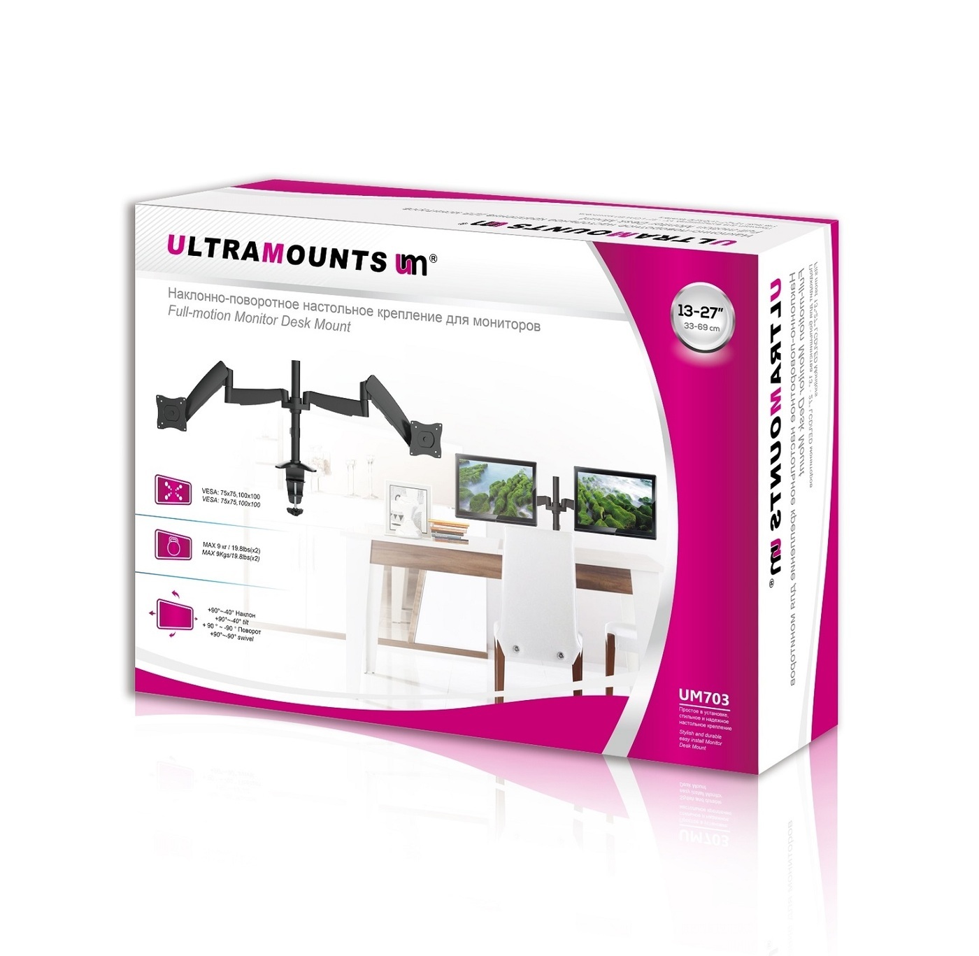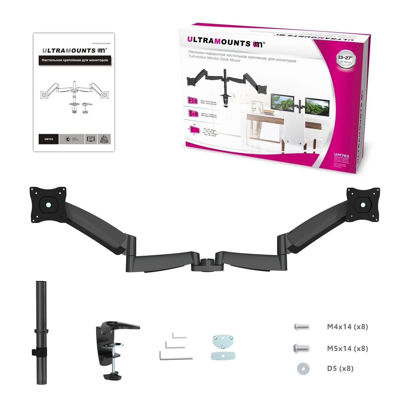 Кронштейн для мониторов Ultramounts UM 702 черный 13"-27" макс.9кг настольный поворот и наклон верт.перемещ.