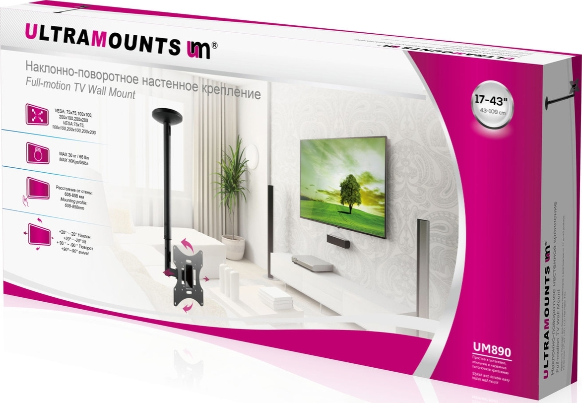 Кронштейн для телевизора потолочный Ultramounts UM890 17"-43"