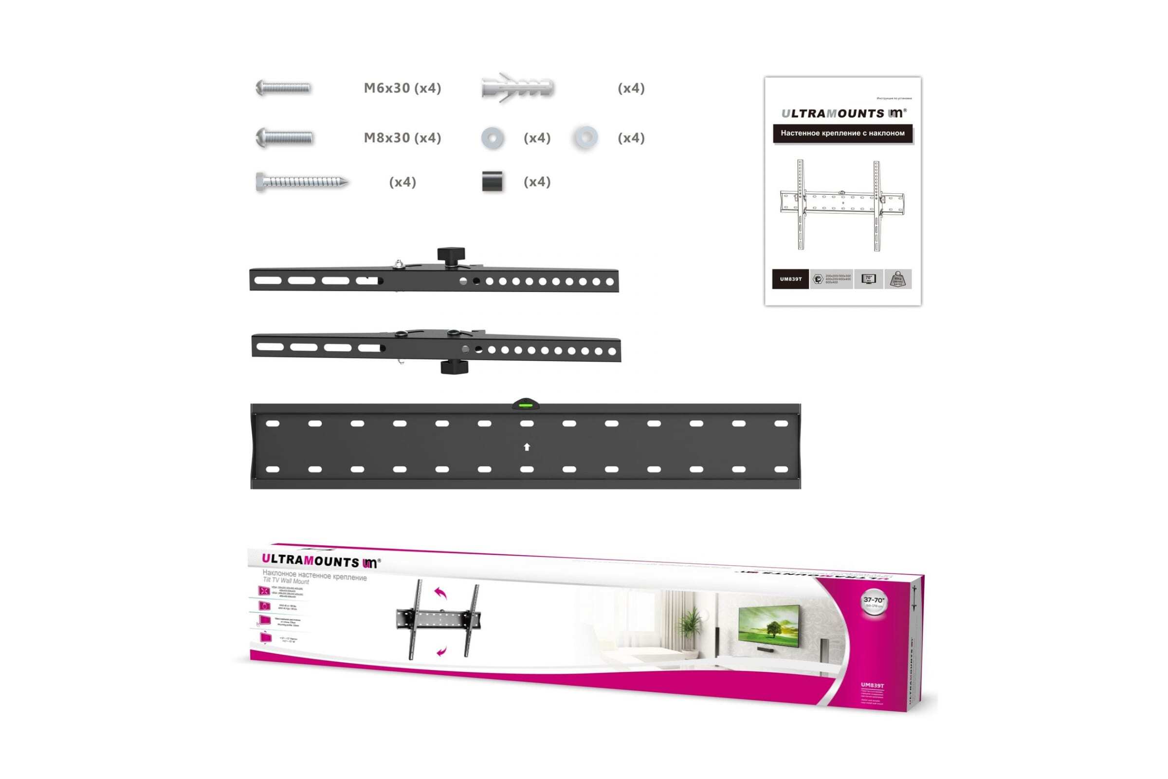 Кронштейн для телевизора наклонный Ultramounts UM839T 37"-75"