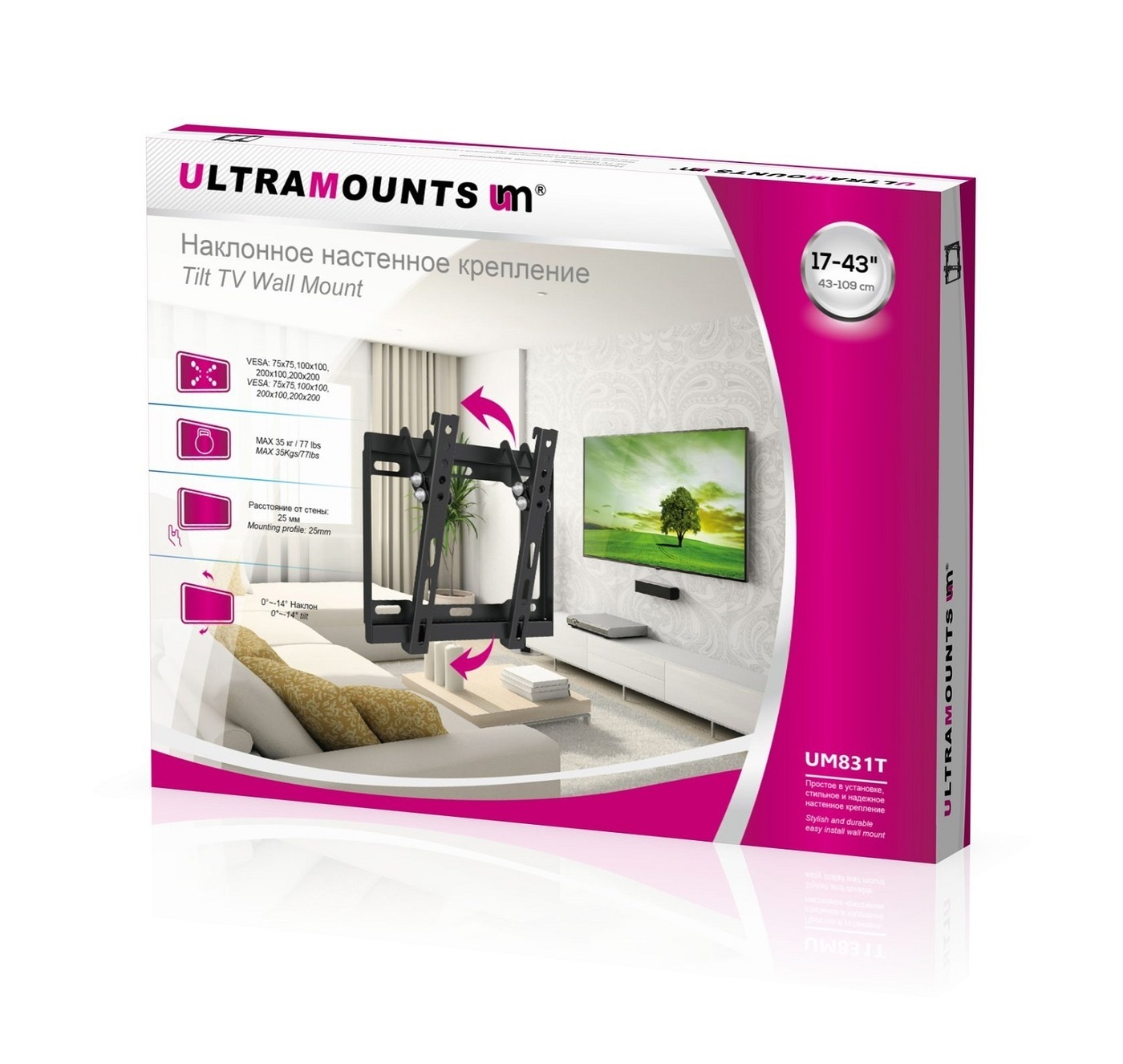 Кронштейн для телевизора наклонный Ultramounts UM831T 17"-43"