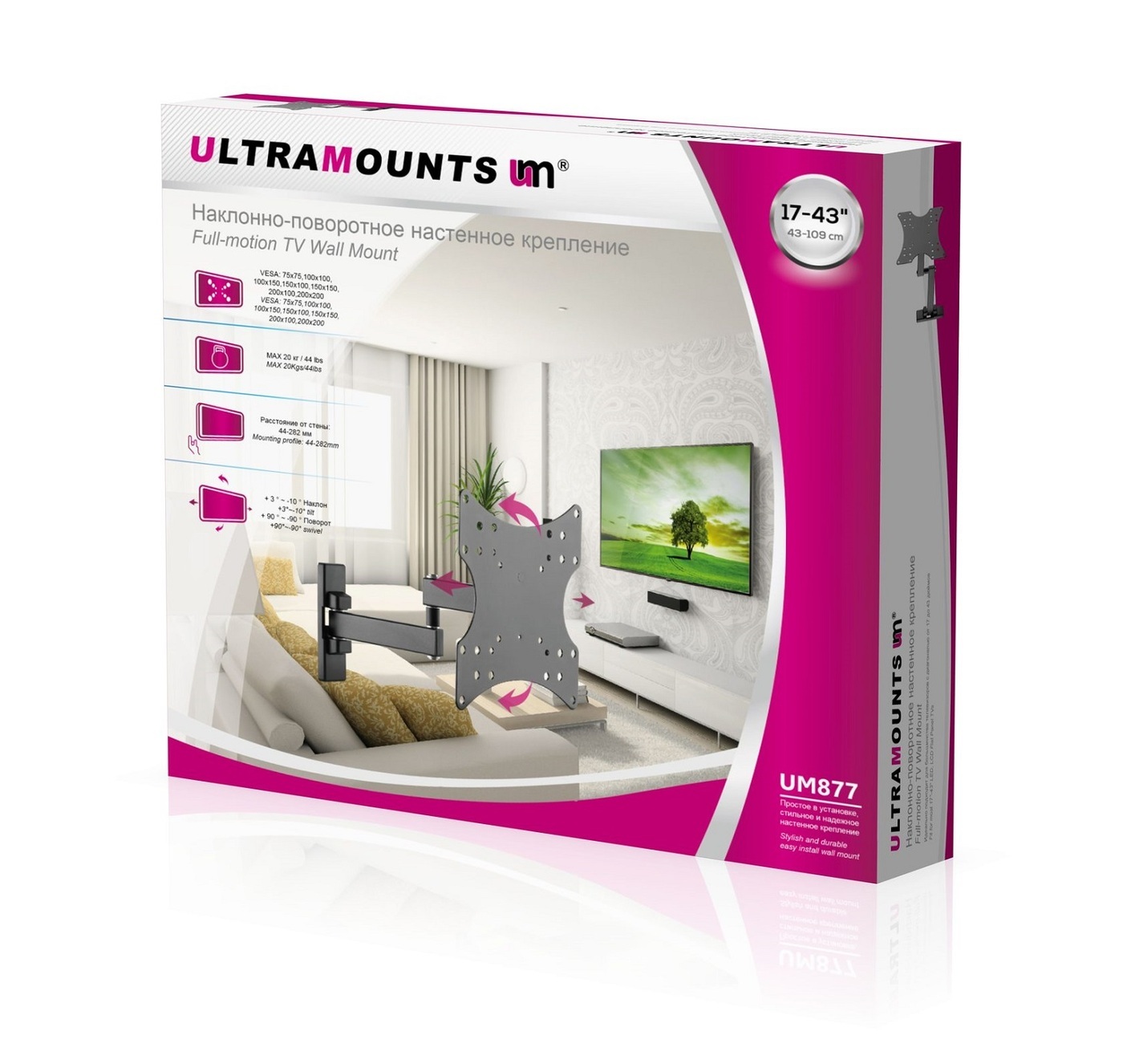 Кронштейн для телевизора с наклоном и поворотом Ultramounts UM877 17"-43"