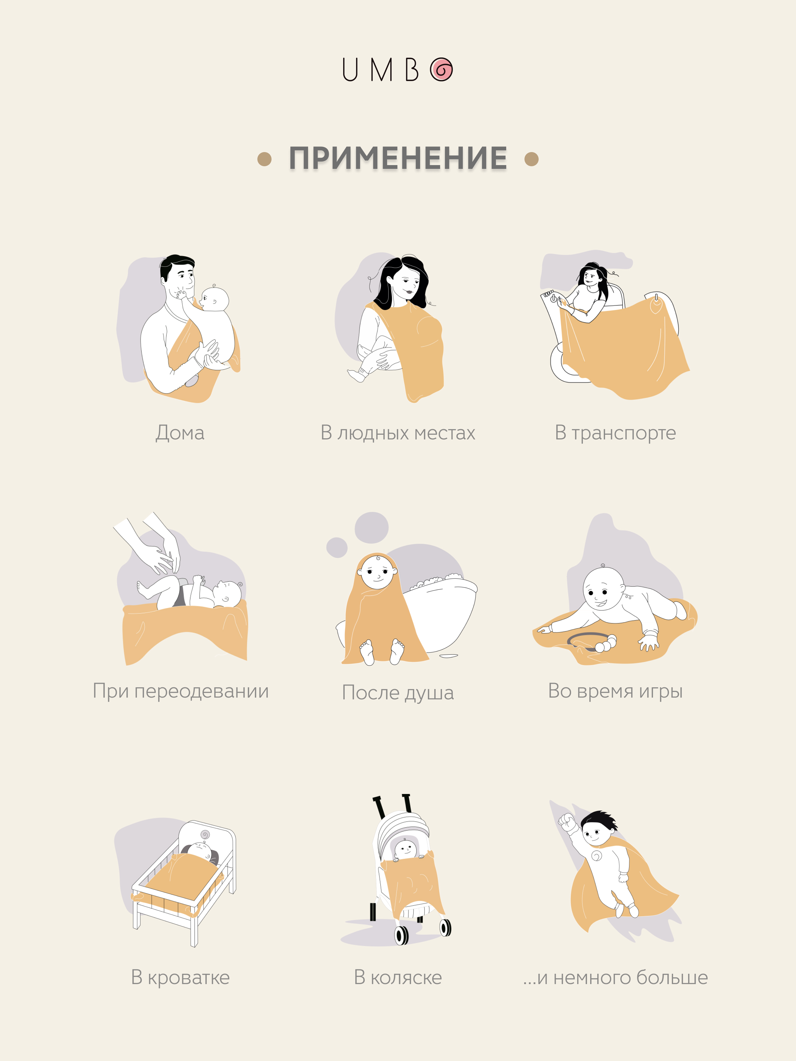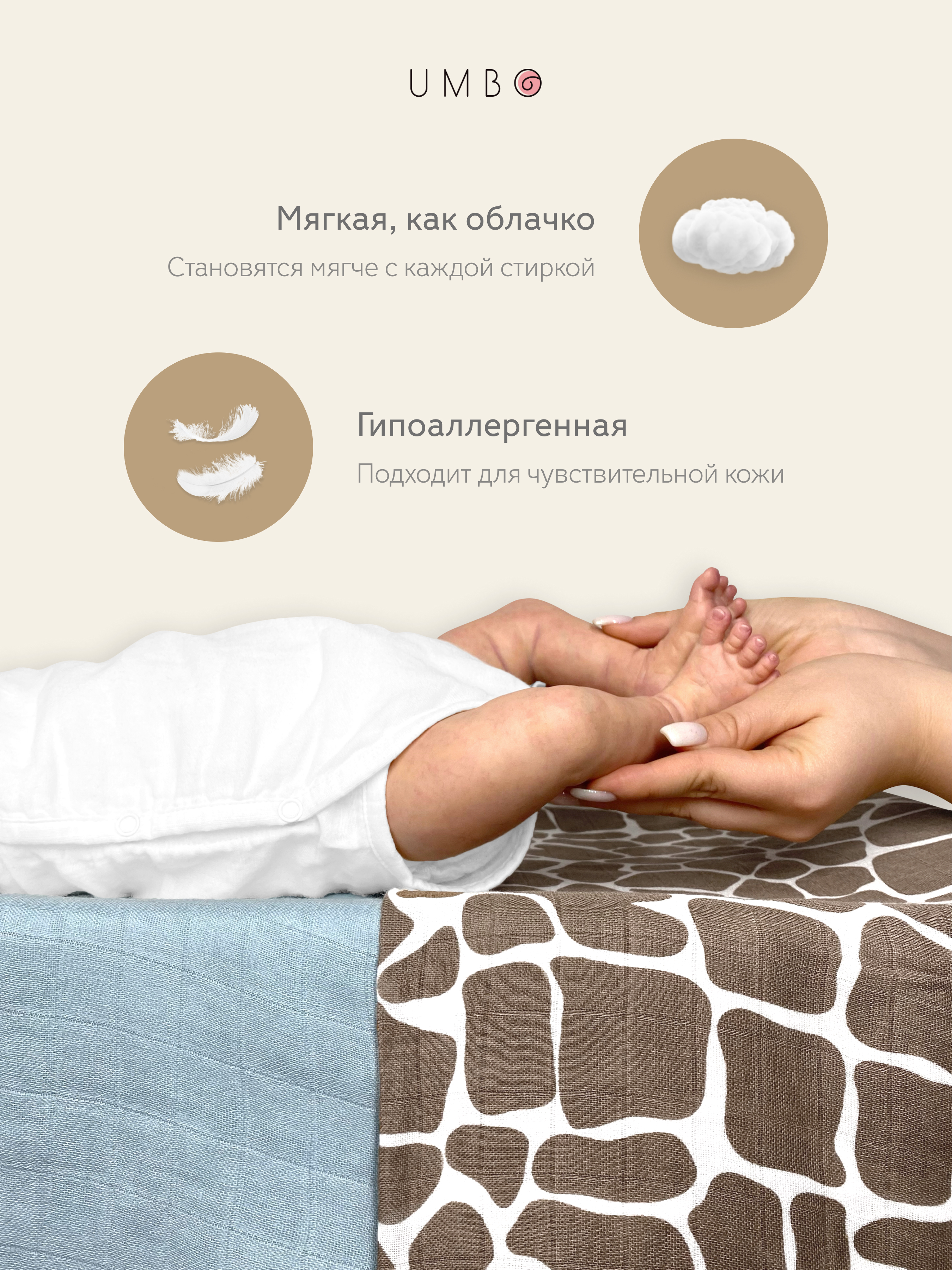 Пеленка текстильная UMBO 90 х 120 см, Хлопок, 1 шт Сафари