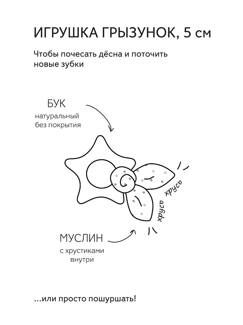 Грызунок-шуршун "Звездочка" UMBO из бука и муслина