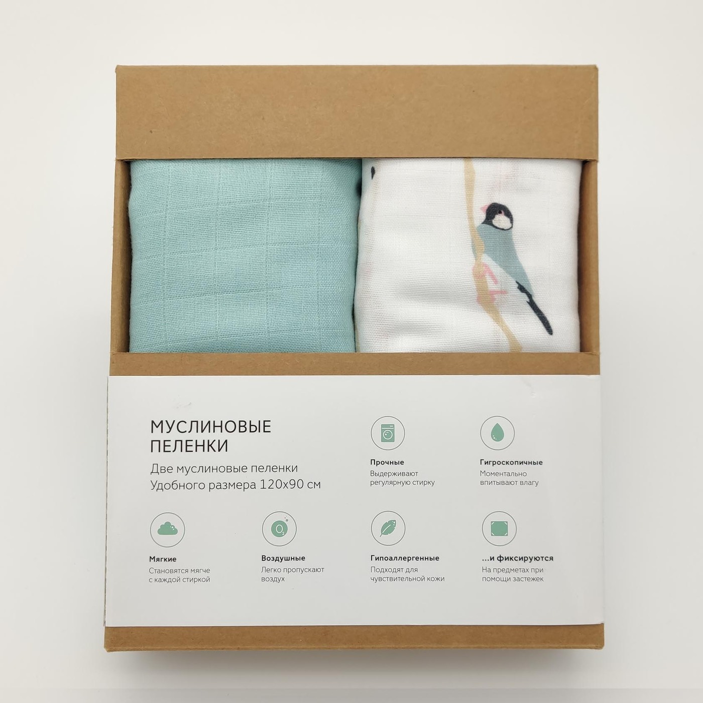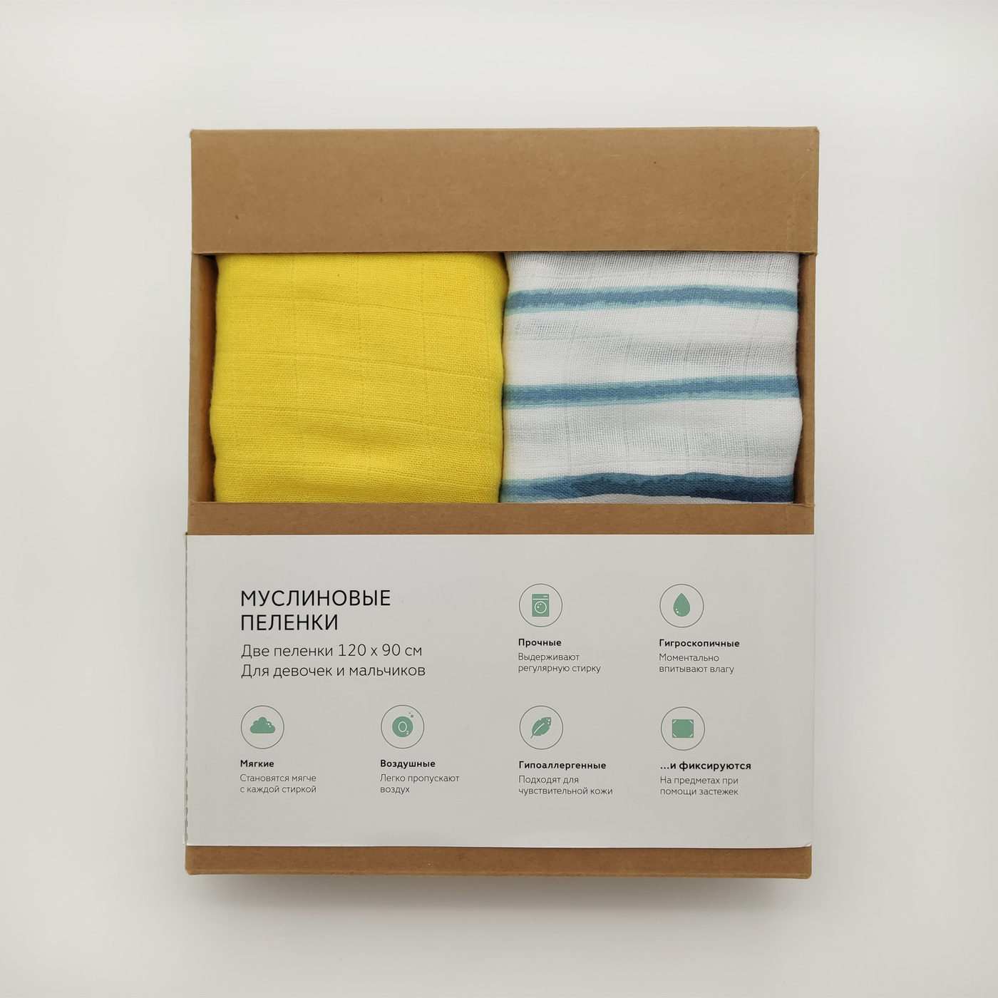 Пеленка текстильная UMBO с внутренними застежками, 90 х 120 см, Муслин, 2 шт Дыхание природы
