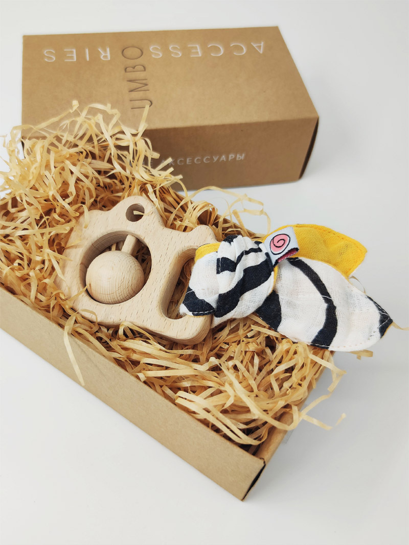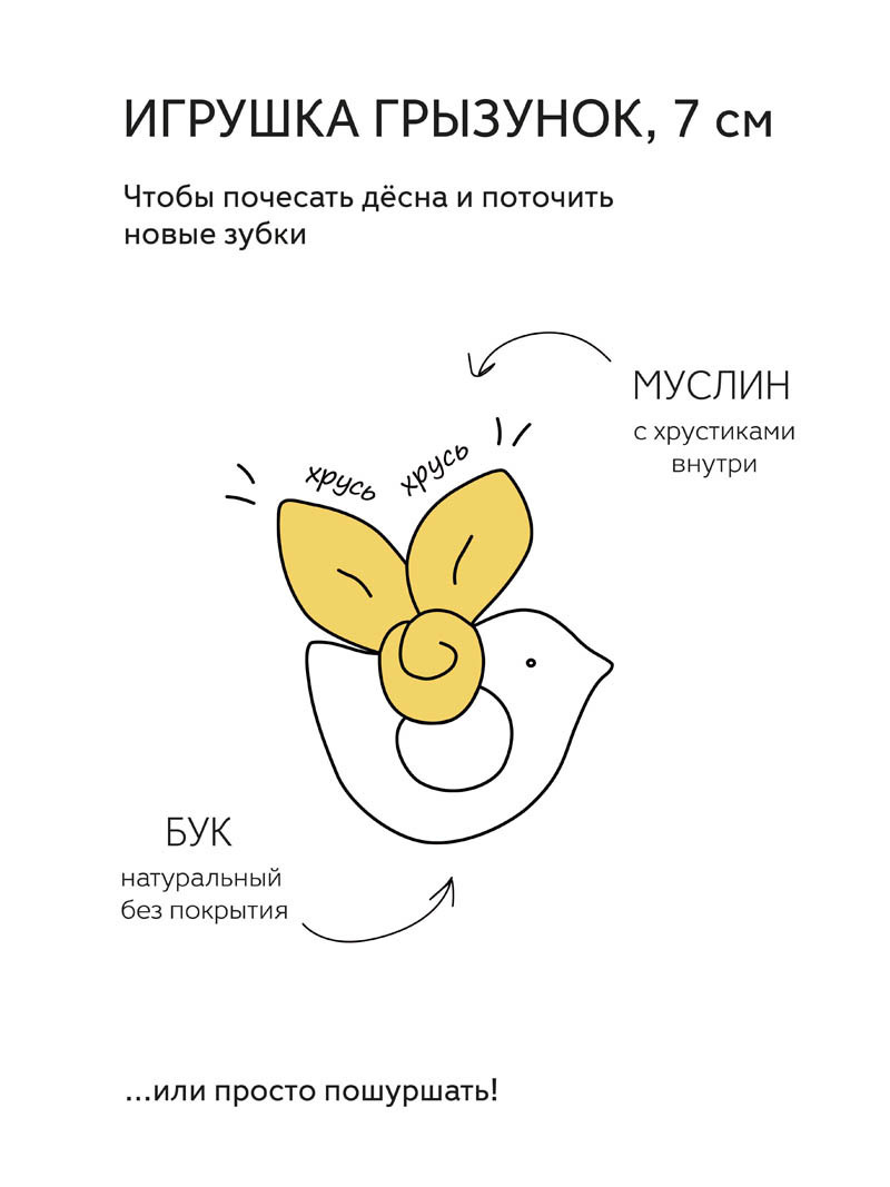 Грызунок-шуршун "Птичка" UMBO из бука и муслина