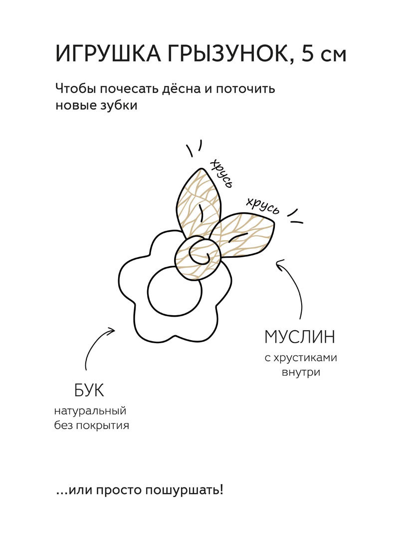 Грызунок-шуршун "Лео" UMBO из бука и муслина
