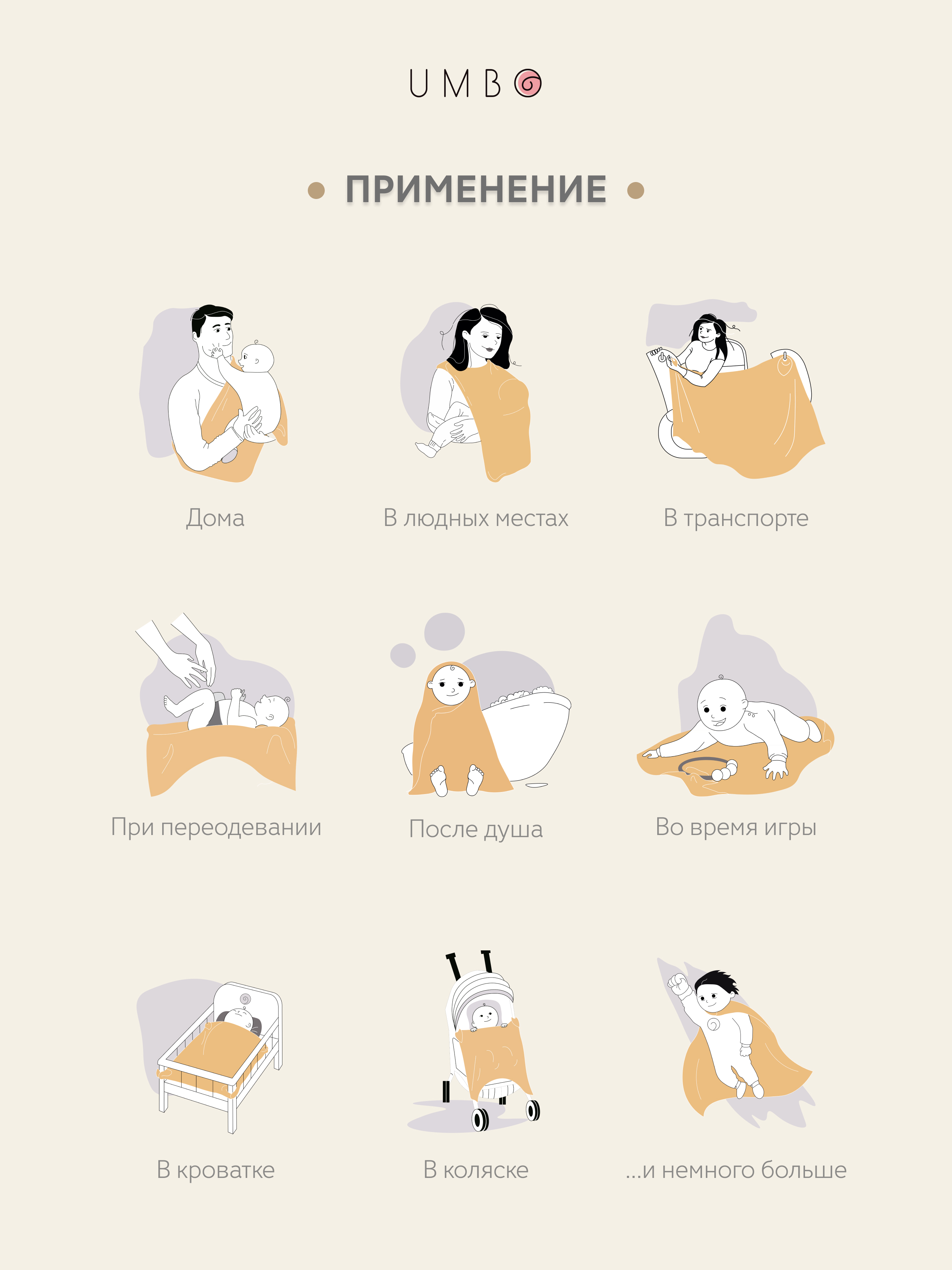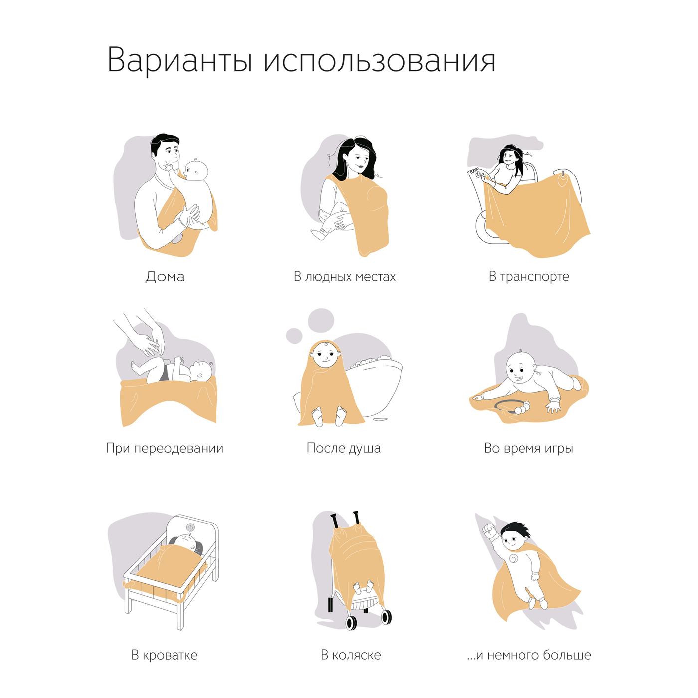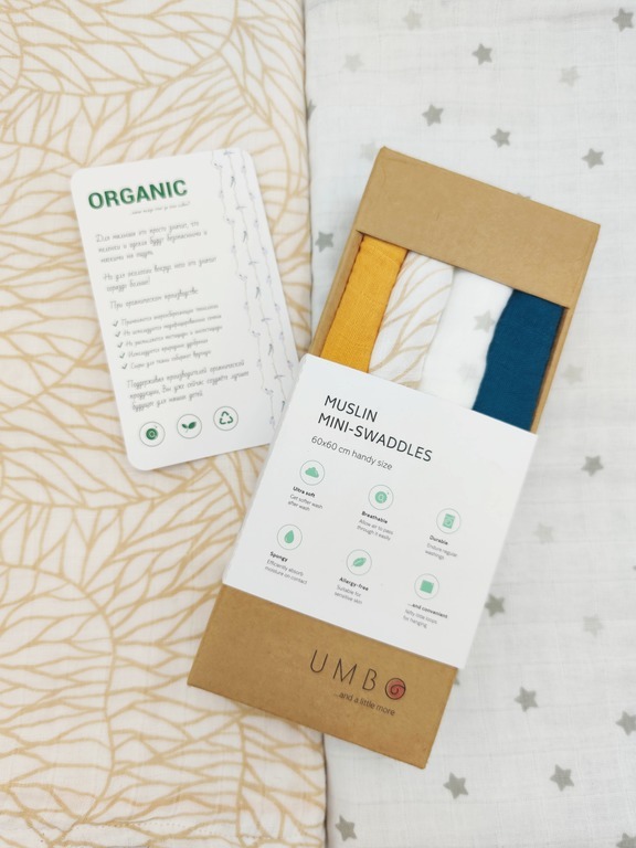 Пеленка текстильная UMBO с внутренними застежками, 90 x 120 см, Муслин, 2 шт Дыхание природы