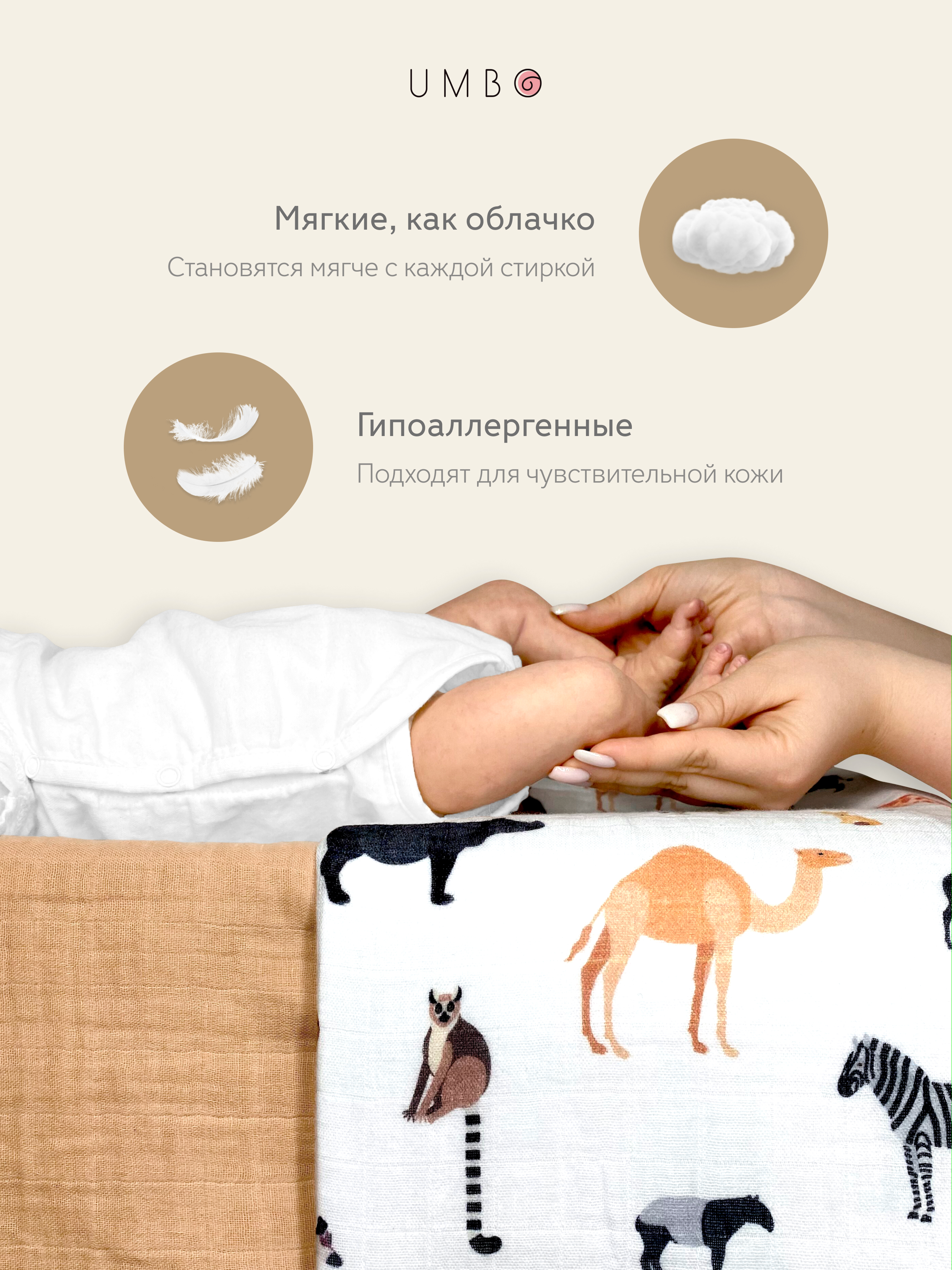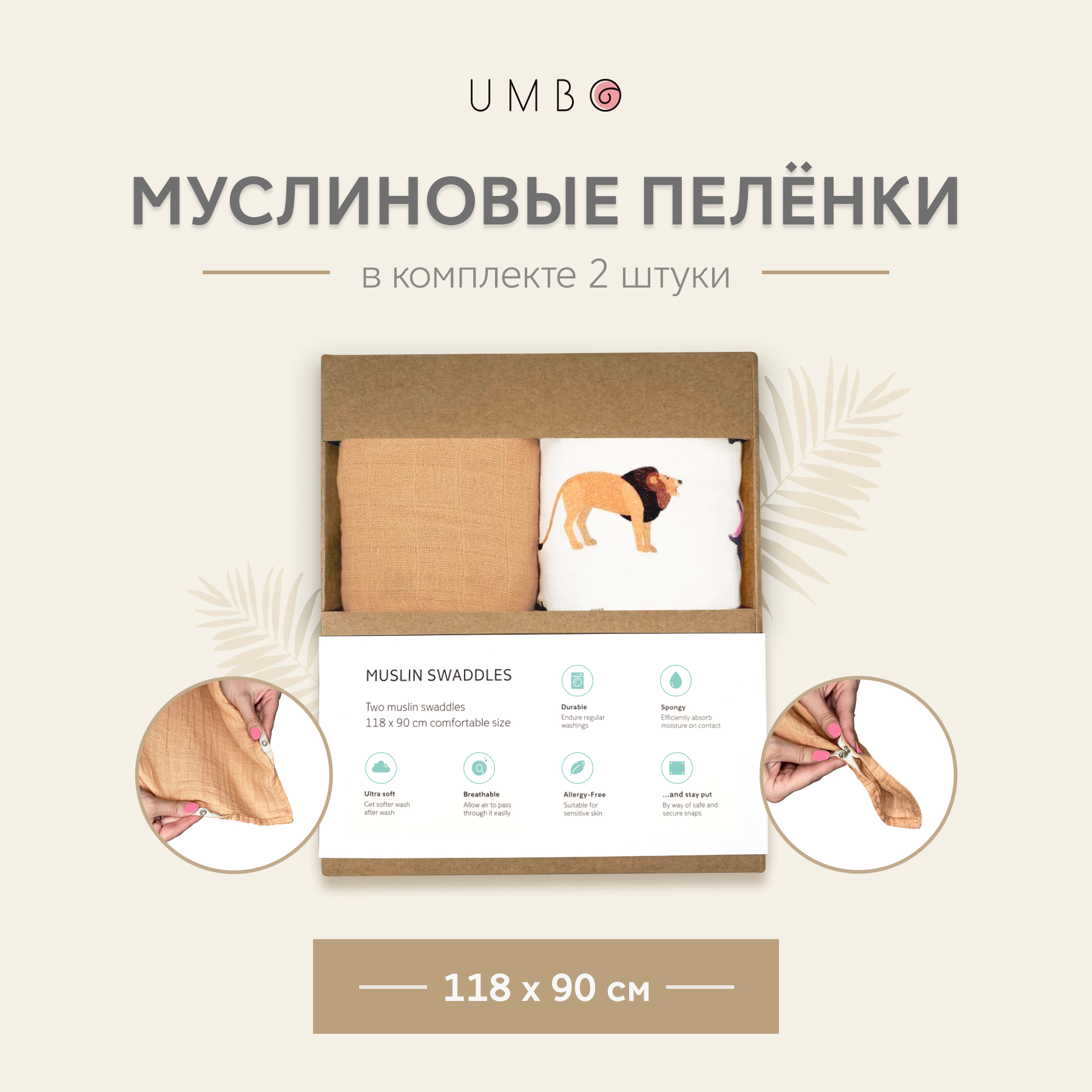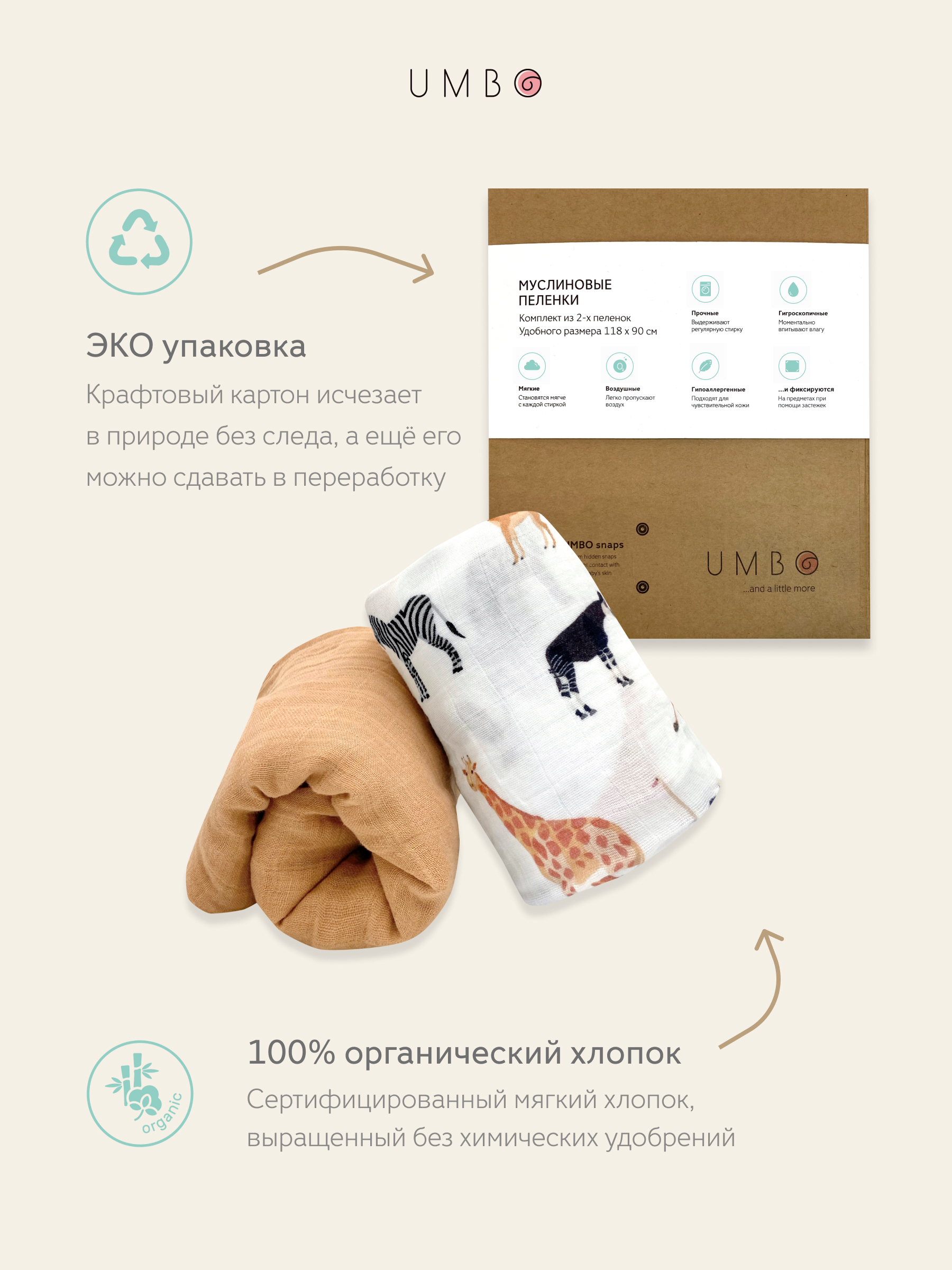 Пеленка текстильная UMBO 90 х 120 см, Хлопок, 2 шт Сафари