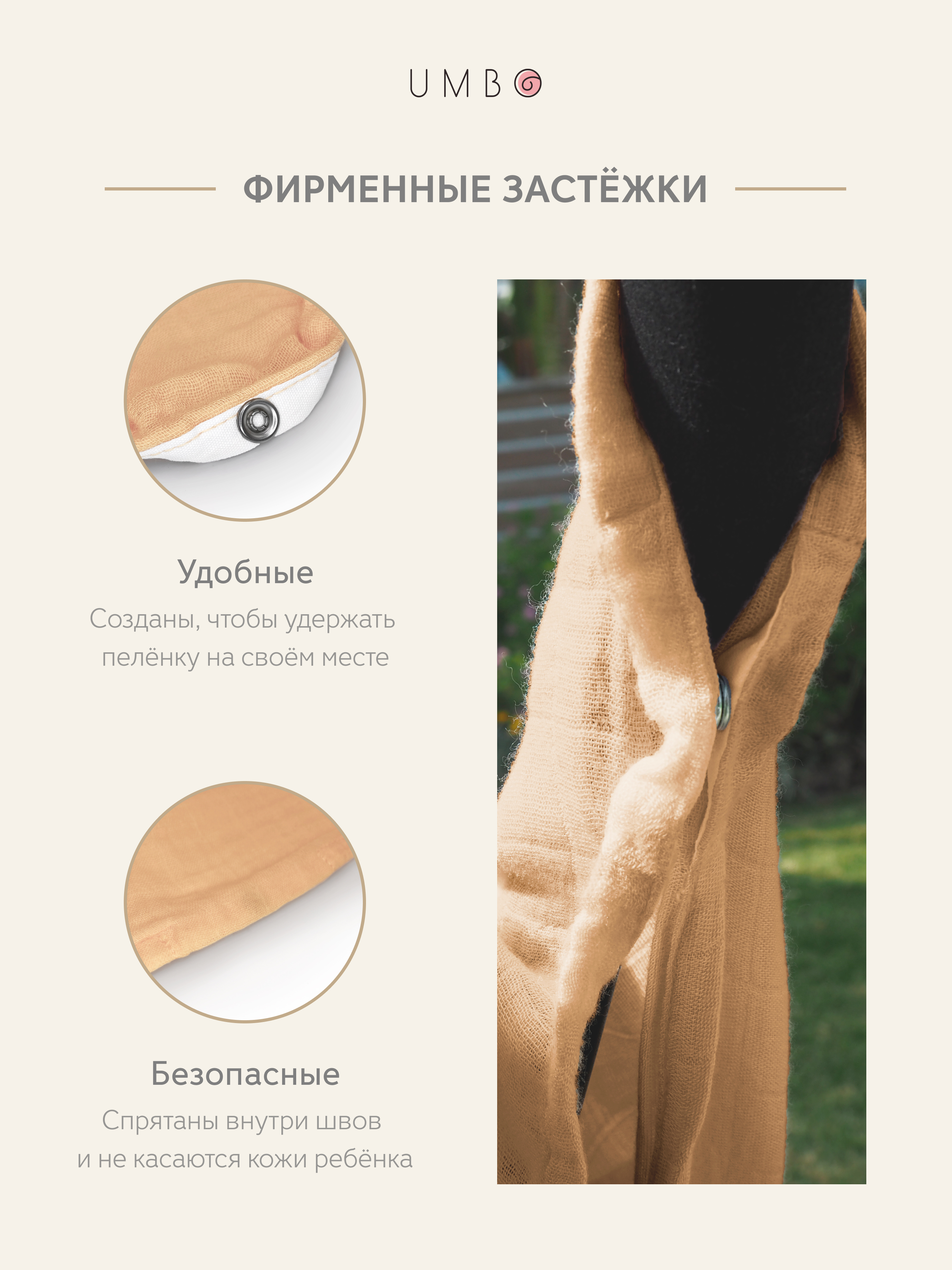Пеленка текстильная UMBO с внутренними застежками, 90 x 120 см, Муслин
