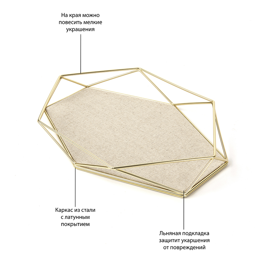 Органайзер-поднос для украшений PRISMA матовая латунь