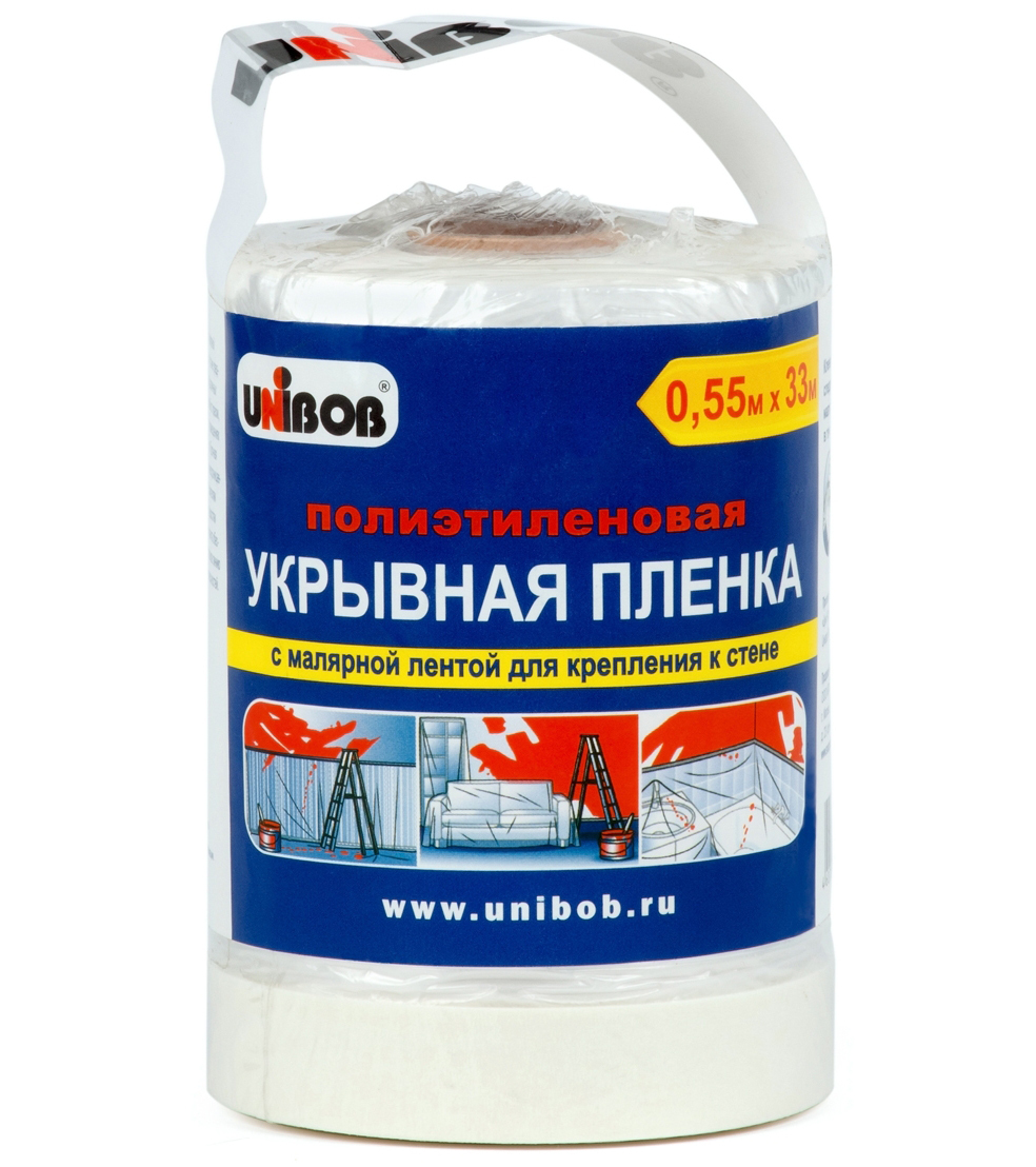 Плёнка укрывная защитная с малярной лентой UNIBOB 0,55 м X 33 м, 10 мкм