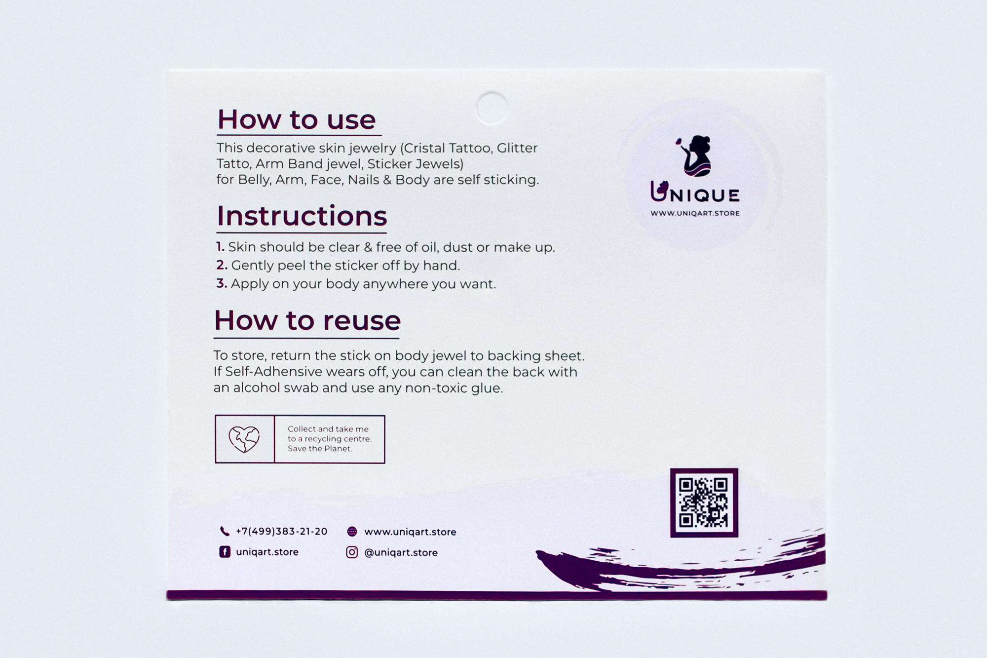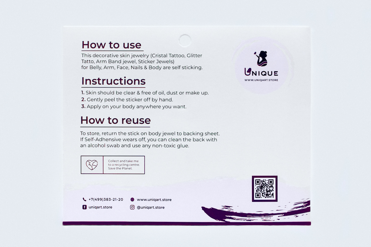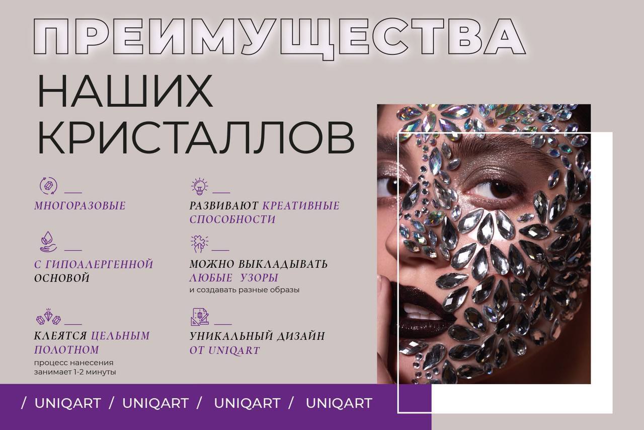 UNIQART стразы для лица/кристаллы с клейким слоем "БОГИНЯ ВОСТОКА", многоразовые.