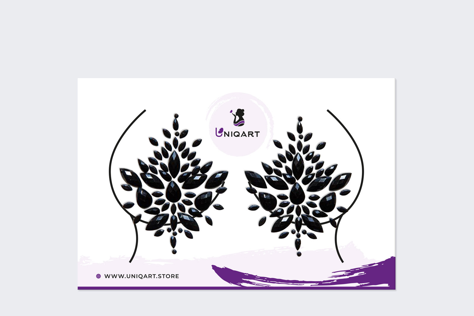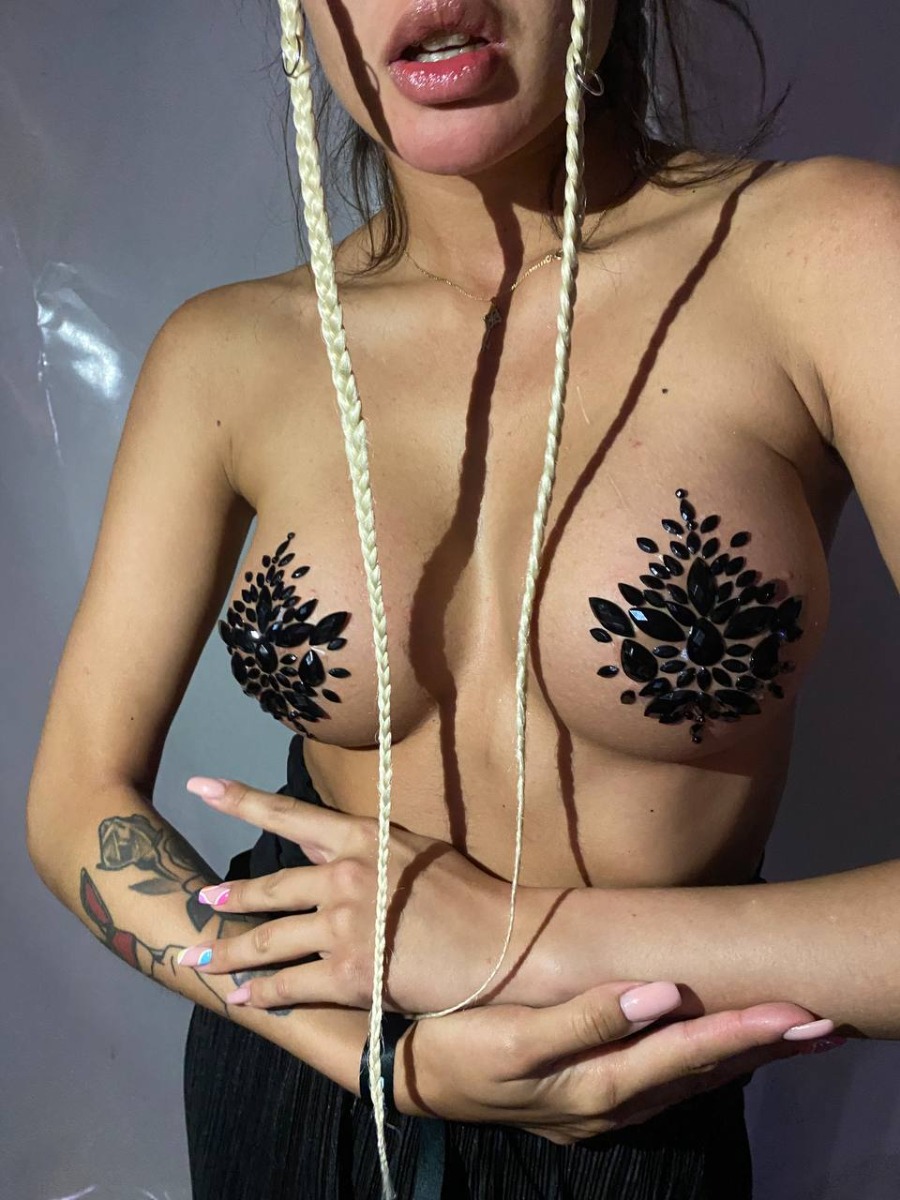 UNIQART Стразы-наклейки/кристаллы (пэстис) на липком слое для грудей "НОЧЬ НЕЖНА", многоразовые.