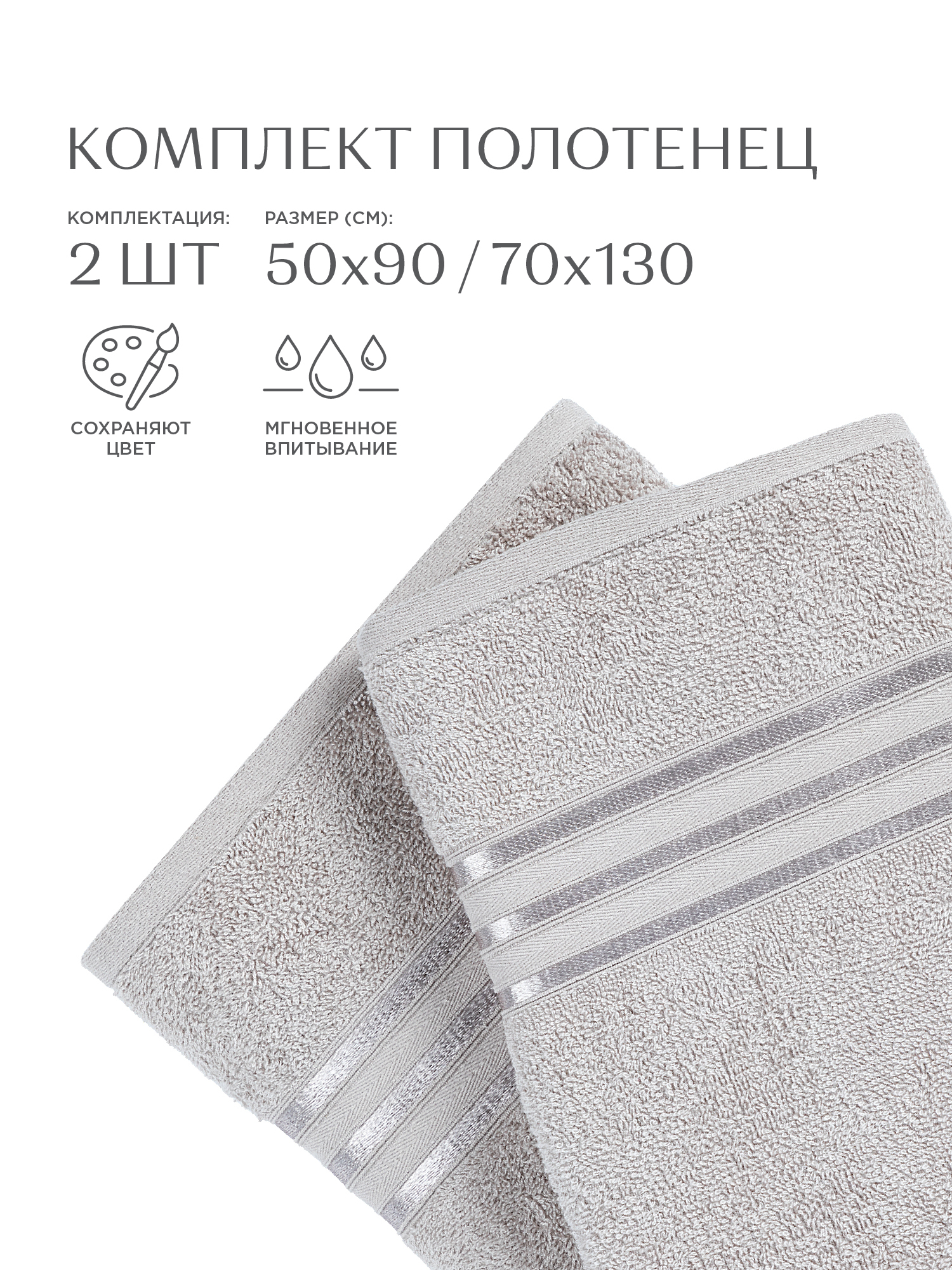 Комплект из 2х махровых полотенец / полотенце банное / полотенце / полотенце махровое (50х90; 70х130) "Унисон" Элегант серо-бежевый
