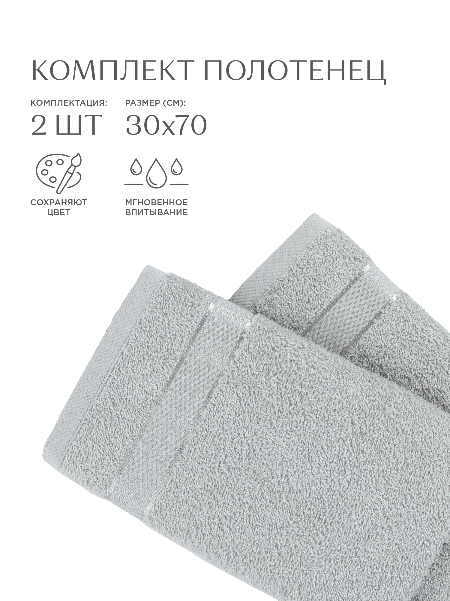 Комплект из 2х махровых полотенец / полотенце банное / полотенце / полотенце махровое (30х70х2шт) "Унисон" Ritz светло-серый