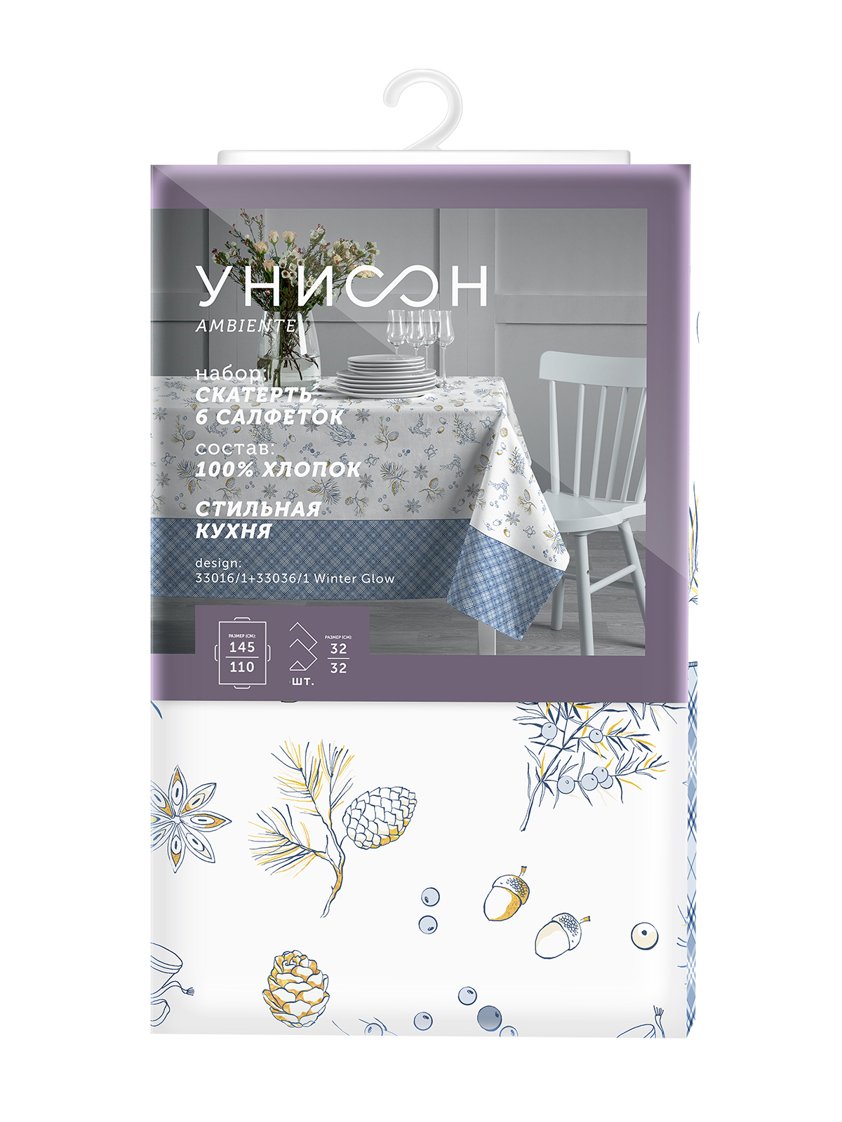 Скатерть для кухни / скатерть на стол хлопок / скатерть / скатерть празднечная / скатерть размер 145х180 "Унисон" рис 33016-1 Winter Glow