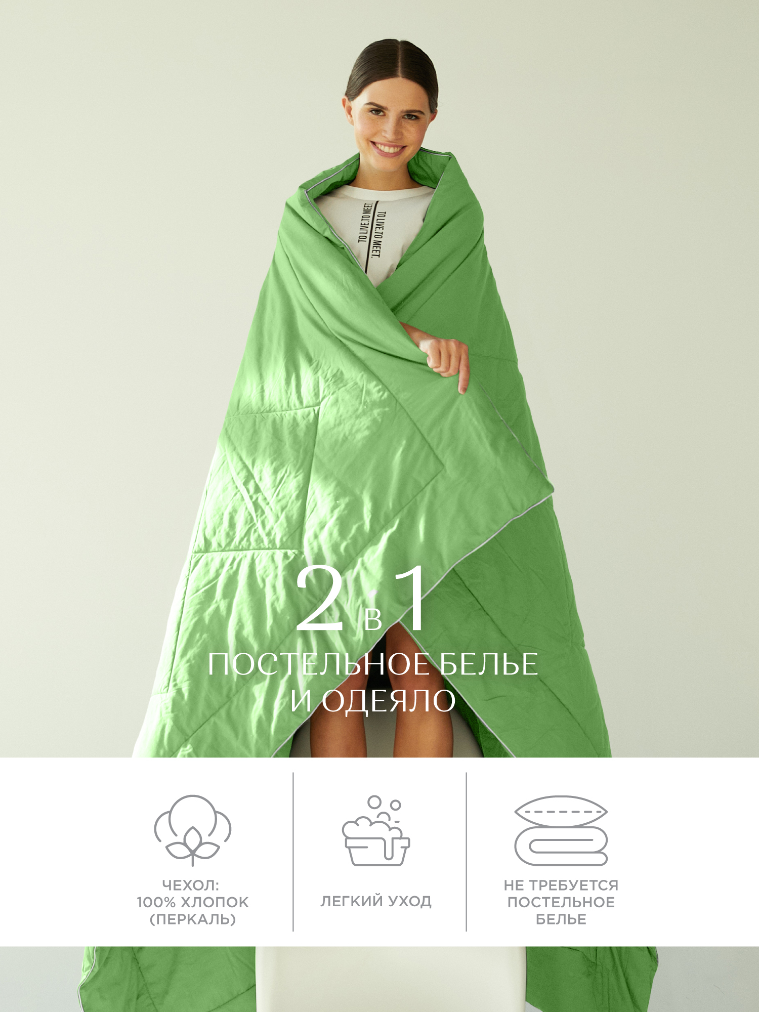 Одеяло / одеяло 1,5 спальное / одеяло стеганное / чехол из 100% хлопка "Унисон" Wow 140х205 перкаль 86111-9 салатовый