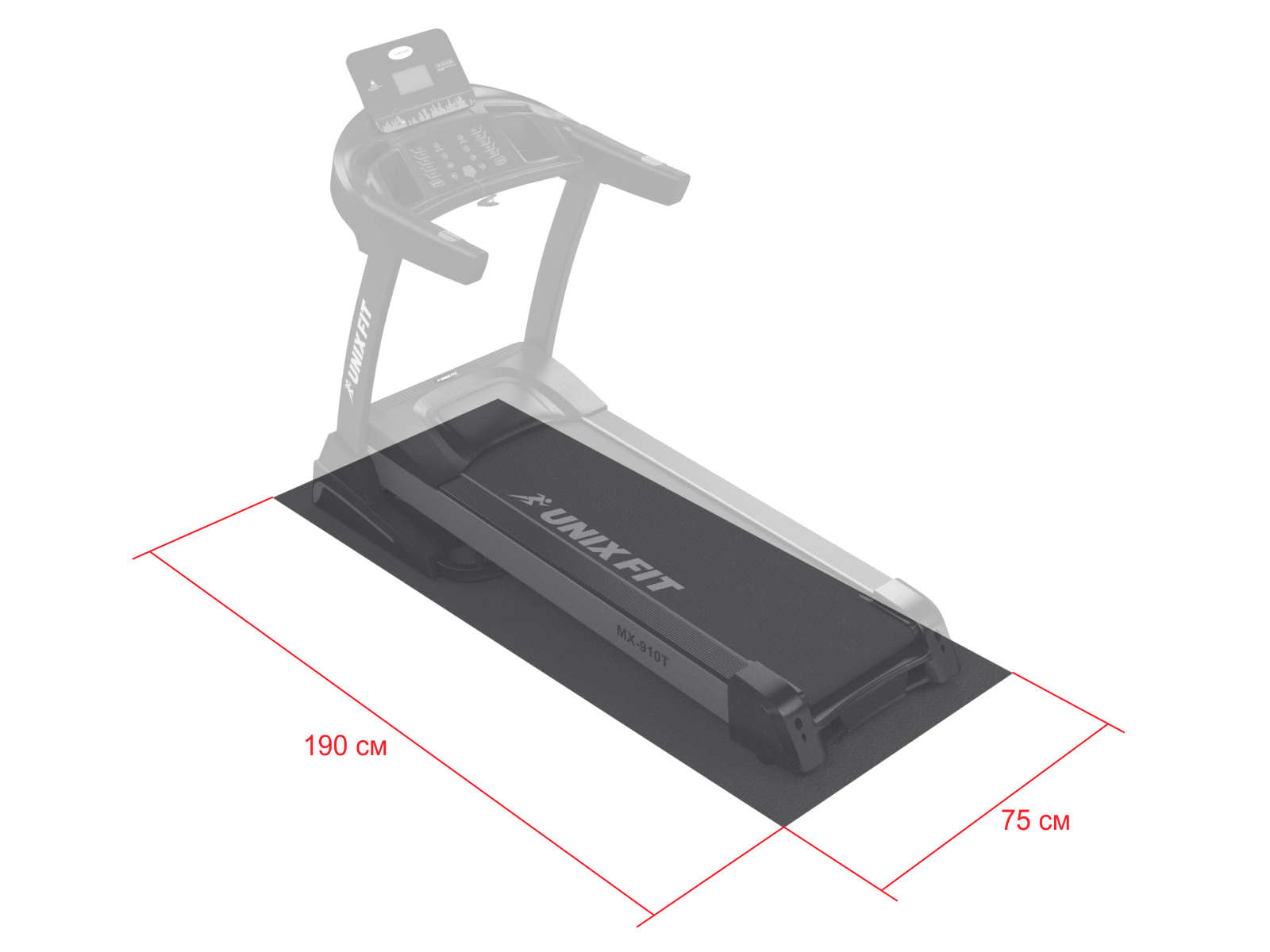 Коврик для беговой дорожки, эллиптических тренажеров, велотренажеров и спин-байков UNIXFIT (190/75)