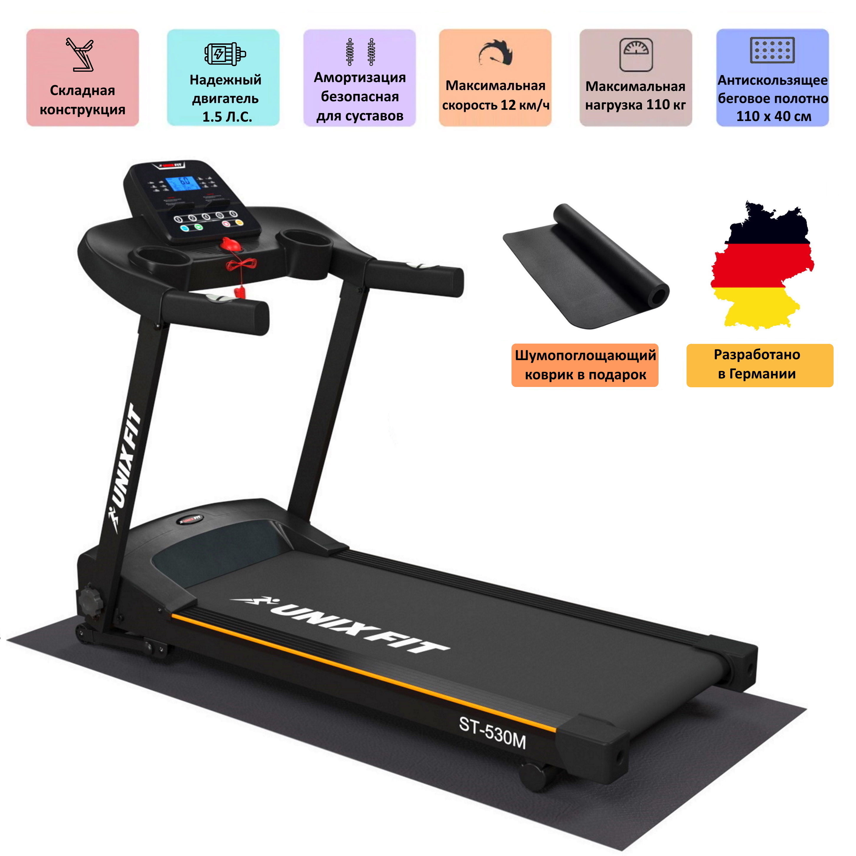 Беговая дорожка UNIXFIT ST 530M складная электрическая компактная для дома