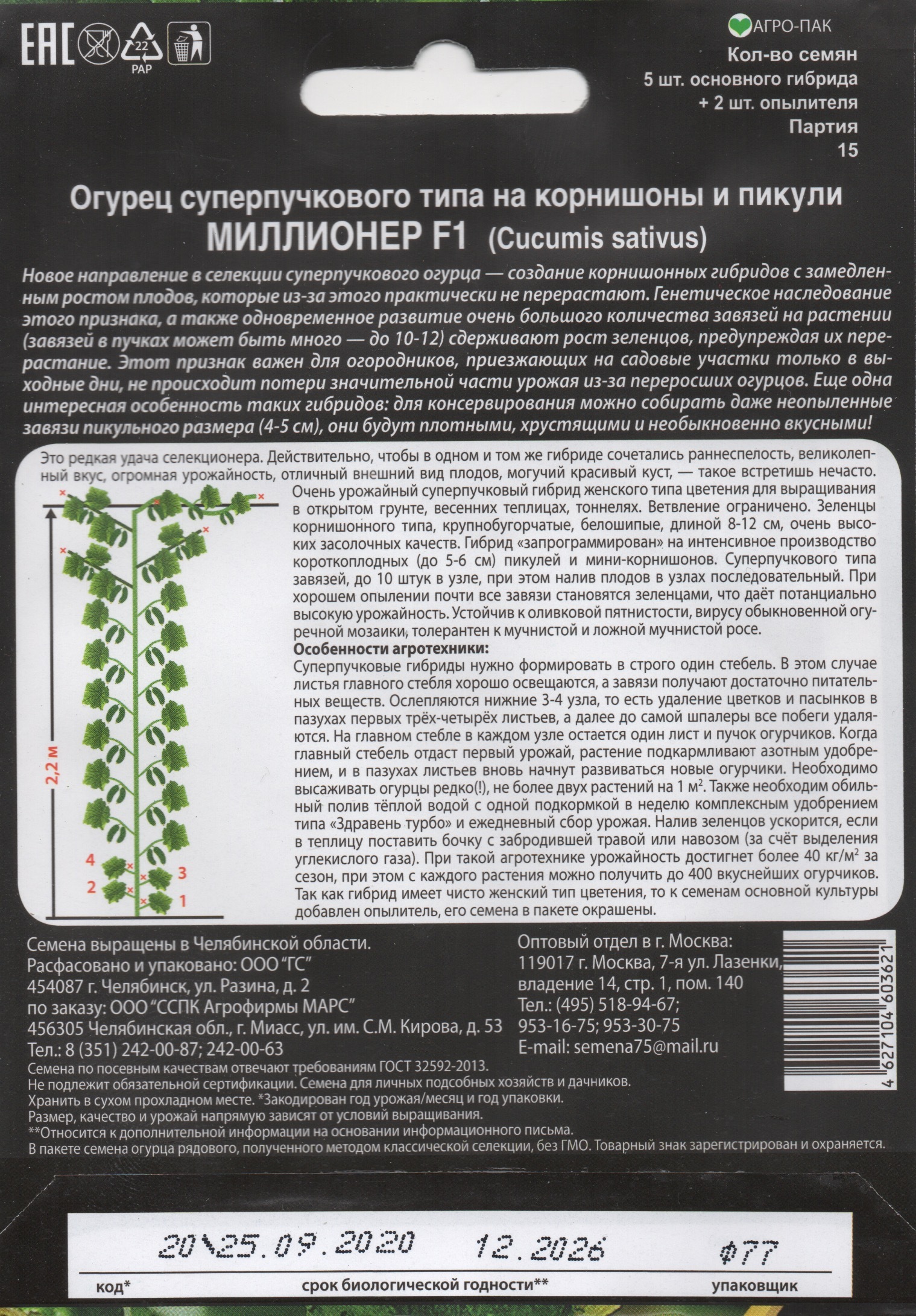 Огурец Миллионер, 7шт., Уральский Дачник