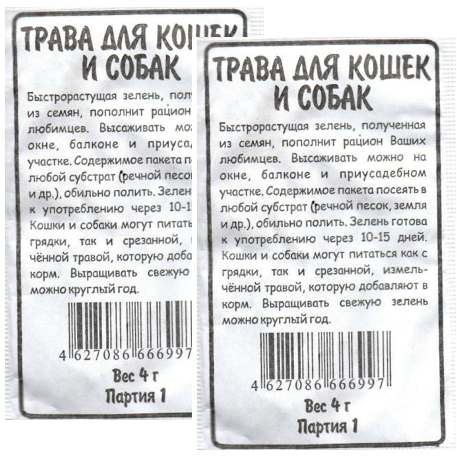 Быстрорастущая зелень "Трава для кошек", 4 гр х 2 шт