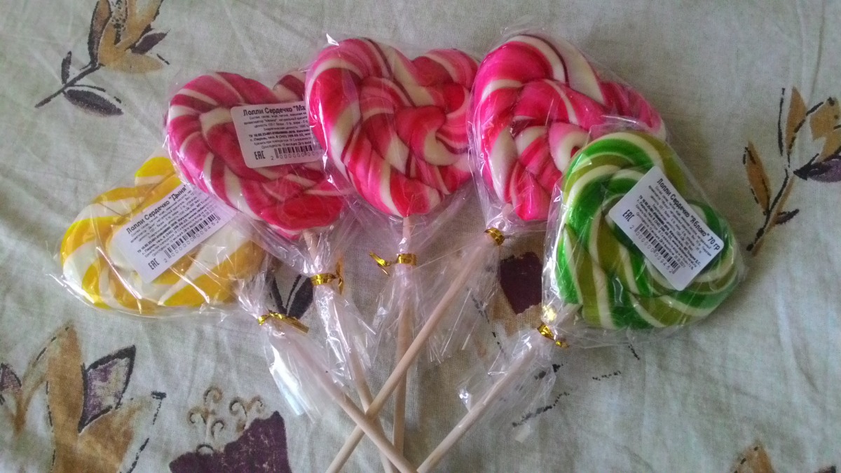 Карамель на палочке "Лолли Сердечко " 70 гр, набор 5 шт
